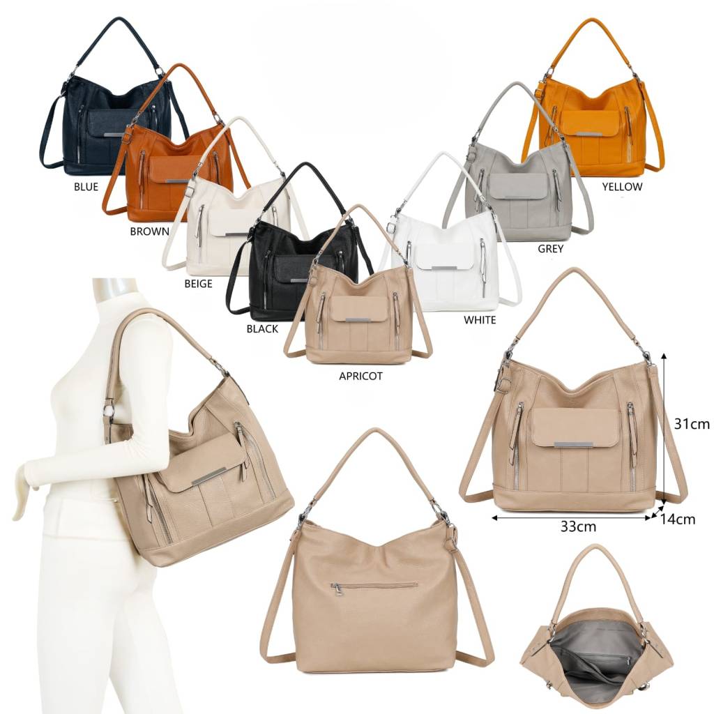 Univerzálna mestská kabelka so siluetou hobo pre každý deň. Mäkké telo z kvalitnej eko kože, pohodlné horné ucho a odnímateľný nastaviteľný popruh umožnia nosenie do ruky, na pleci aj crossbody. Predné dizajnové zipsy a vrecko s klopou dodajú šmrnc a ponúkajú rýchly prístup k drobnostiam.