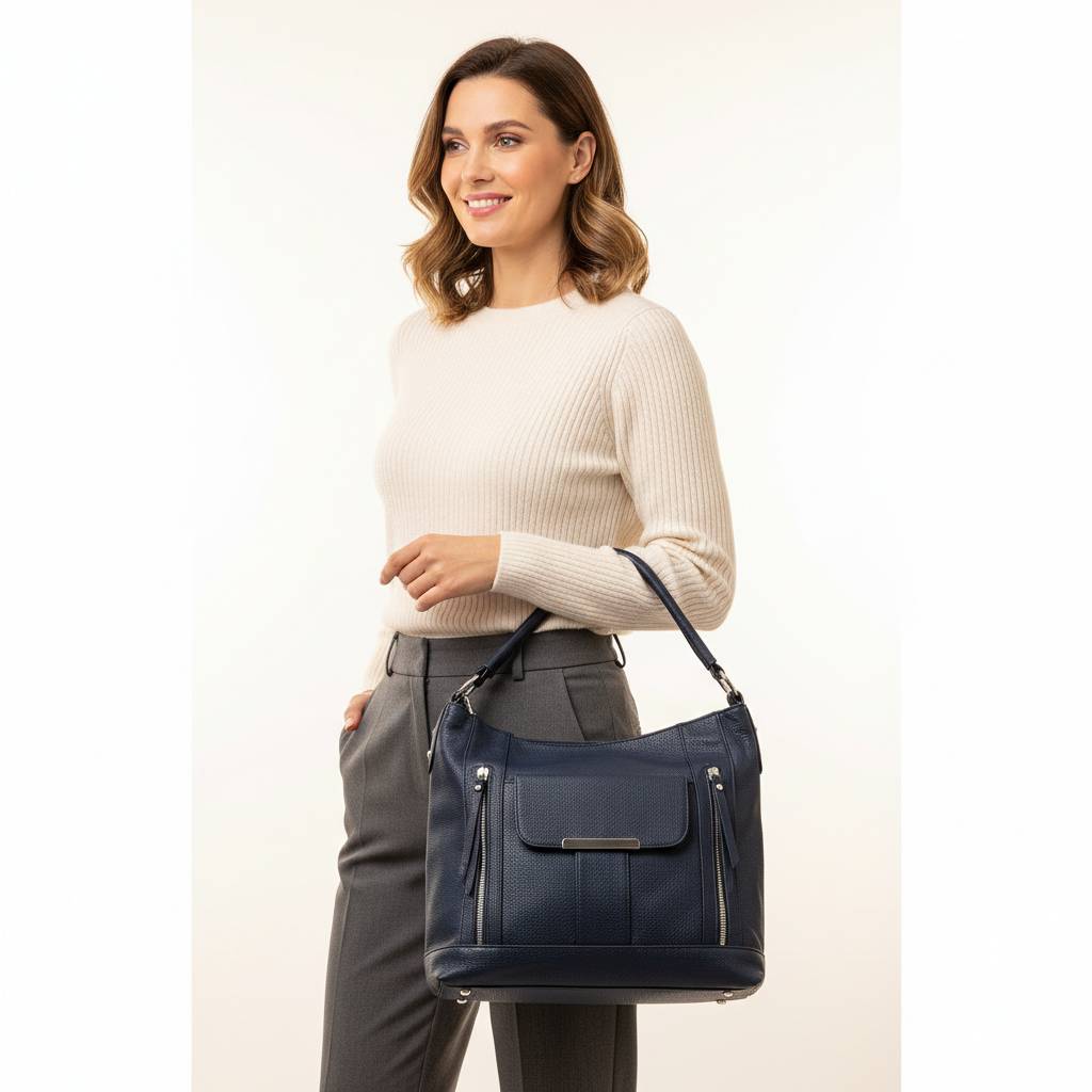 Univerzálna mestská kabelka so siluetou hobo pre každý deň. Mäkké telo z kvalitnej eko kože, pohodlné horné ucho a odnímateľný nastaviteľný popruh umožnia nosenie do ruky, na pleci aj crossbody. Predné dizajnové zipsy a vrecko s klopou dodajú šmrnc a ponúkajú rýchly prístup k drobnostiam.