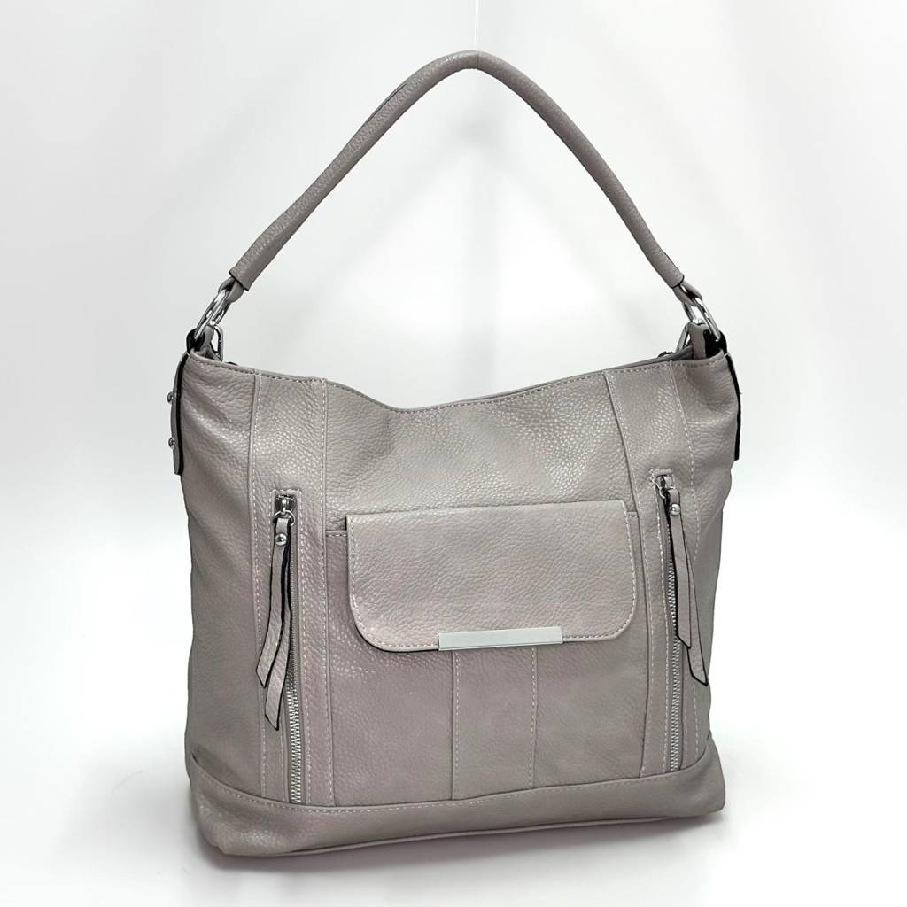 Univerzálna mestská kabelka so siluetou hobo pre každý deň. Mäkké telo z kvalitnej eko kože, pohodlné horné ucho a odnímateľný nastaviteľný popruh umožnia nosenie do ruky, na pleci aj crossbody. Predné dizajnové zipsy a vrecko s klopou dodajú šmrnc a ponúkajú rýchly prístup k drobnostiam.