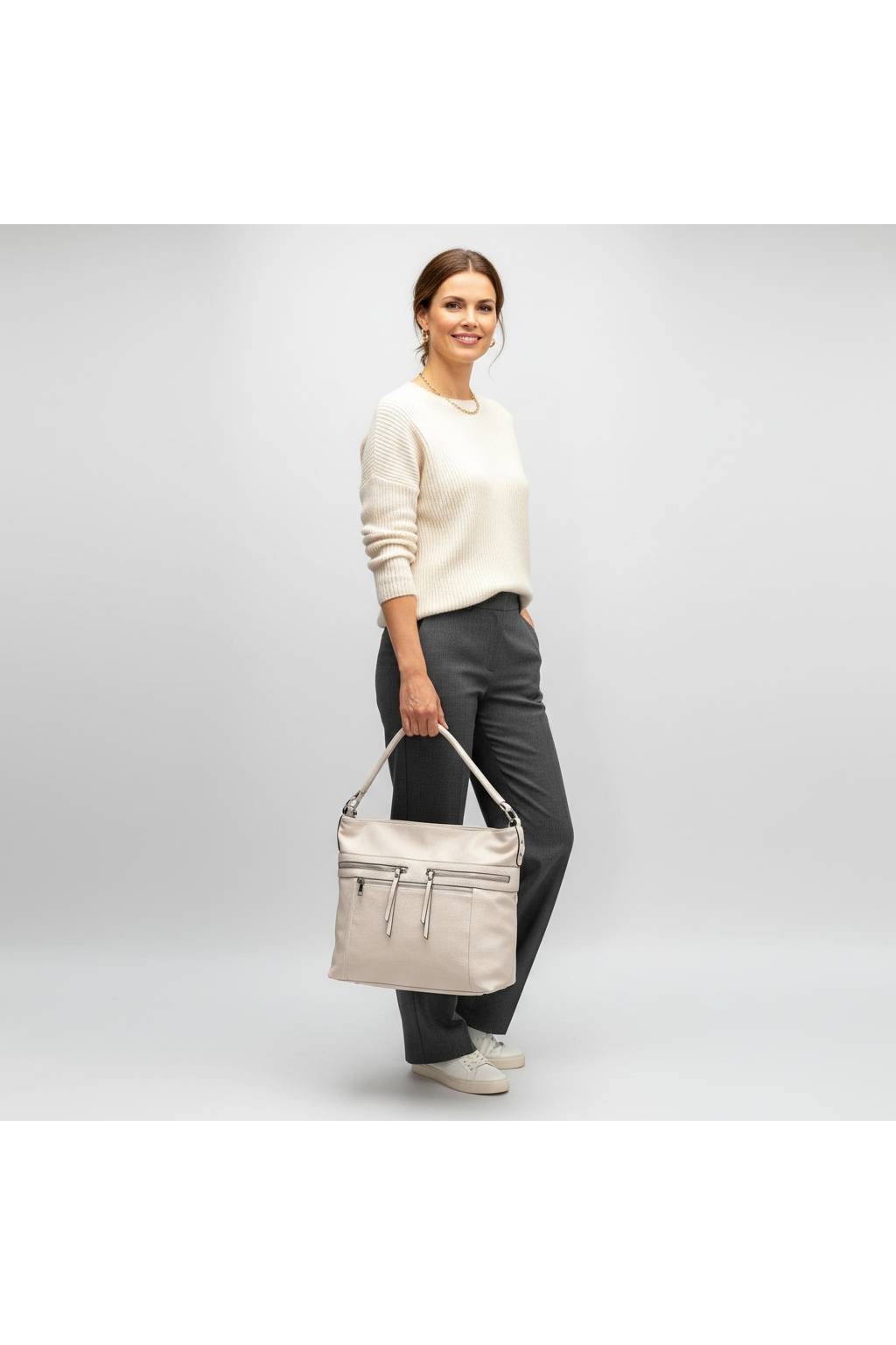 Elegantná a zároveň maximálne praktická dámska kabelka typu hobo, ktorá sa krásne prispôsobí telu a hodí sa na každý deň. Vďaka premyslenému členeniu a viacerým zipsovým vreckám budete mať vo veciach poriadok – mobil, kľúče aj peňaženku vytiahnete za sekundu.