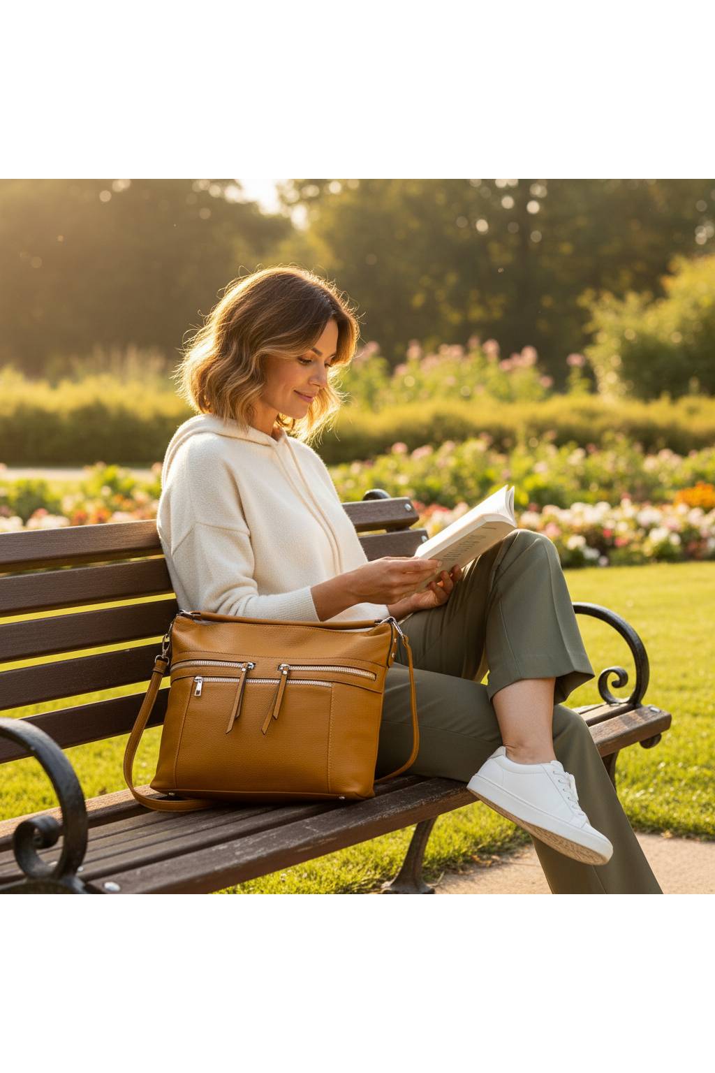 Elegantná a zároveň maximálne praktická dámska kabelka typu hobo, ktorá sa krásne prispôsobí telu a hodí sa na každý deň. Vďaka premyslenému členeniu a viacerým zipsovým vreckám budete mať vo veciach poriadok – mobil, kľúče aj peňaženku vytiahnete za sekundu.