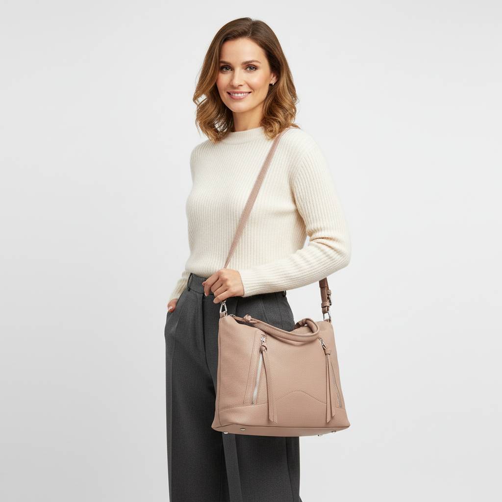 Univerzálna mestská kabelka s mäkkou siluetou hobo je stvorená na každý deň. Vďaka praktickému vrchnému uchu a odnímateľnému nastaviteľnému popruhu ju môžete nosiť v ruke, na ramene aj crossbody. Predné dizajnové zipsy dodávajú šmrnc a zároveň ukrývajú rýchle vrecká na drobnosti.