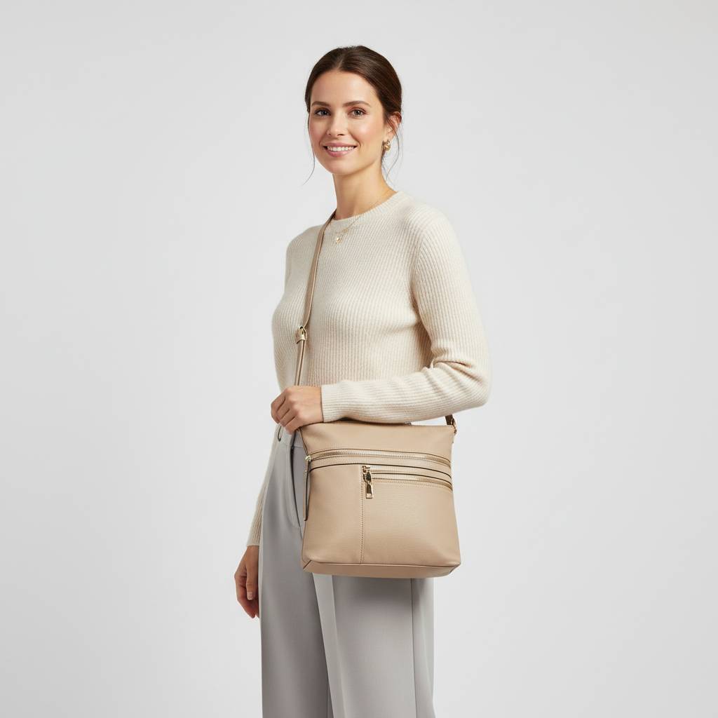 Šikovná mestská crossbody kabelka v čistom dizajne s tromi praktickými zipsami vpredu. Ľahká, odolná a ideálna na každý deň – od práce, cez nákupy až po voľný čas.