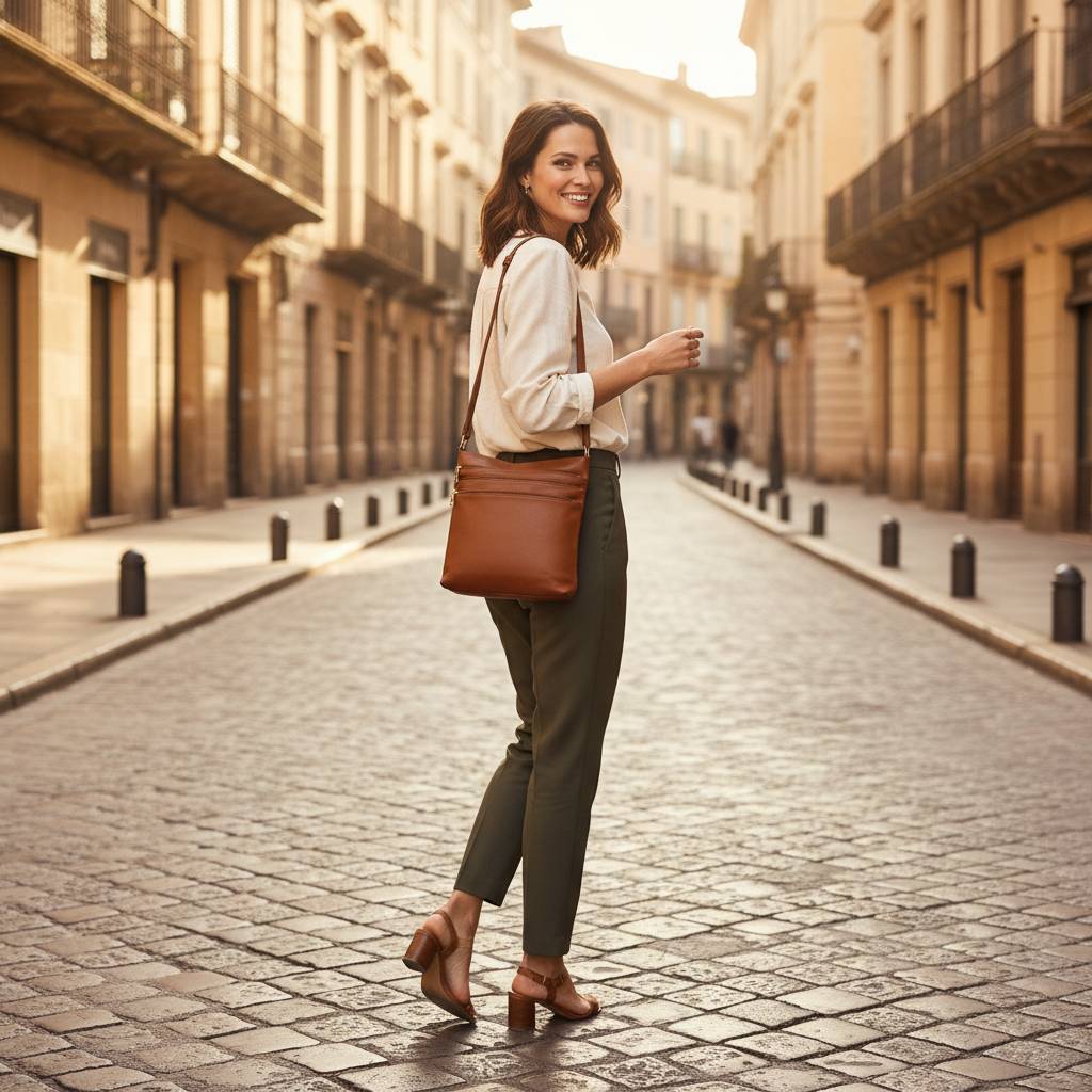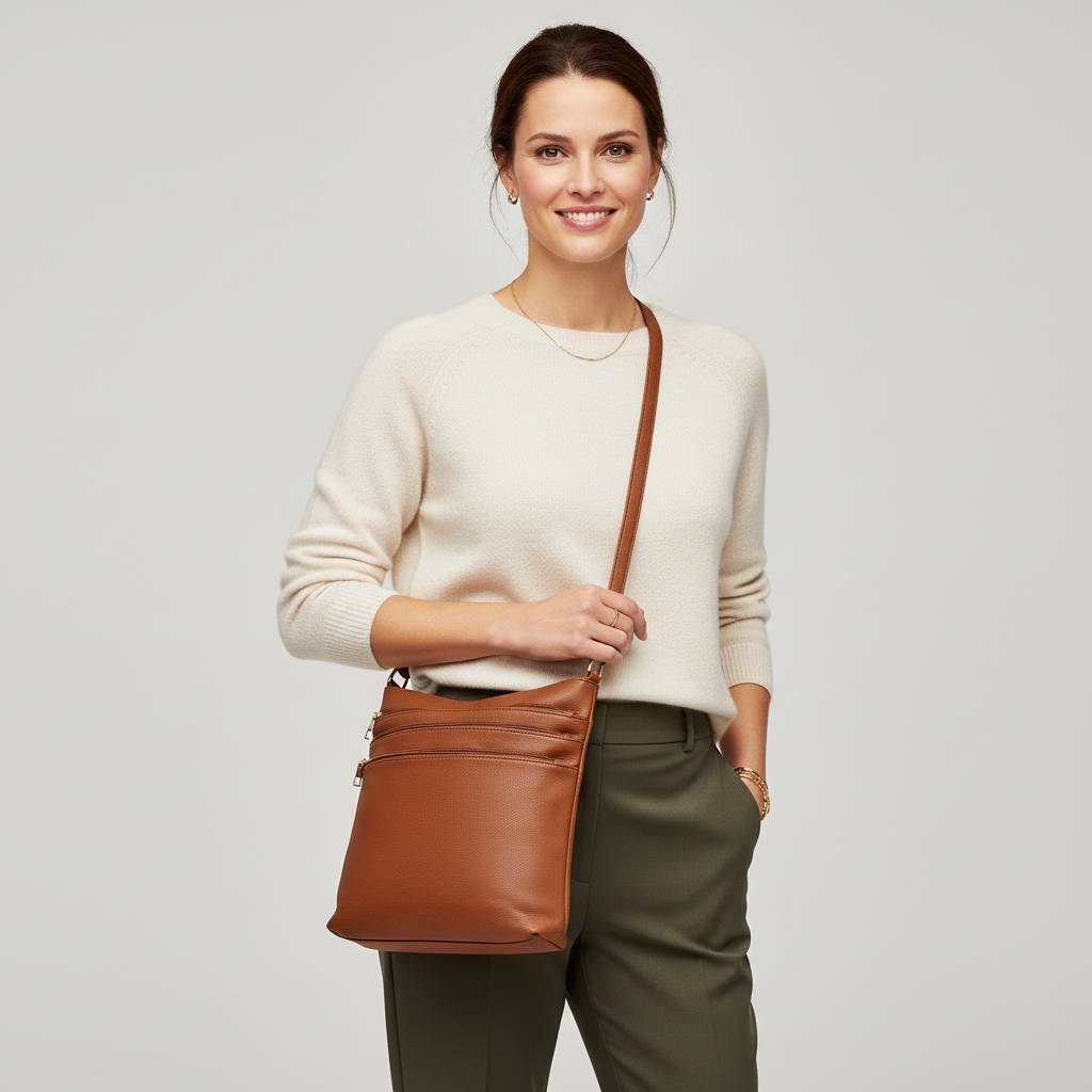 Elegantná a praktická mestská crossbody na každodenné nosenie. Kompaktná, no prekvapivo priestranná – ideálna na peňaženku, mobil, kľúče, kozmetiku aj malý diár (A4 sa nezmestí).