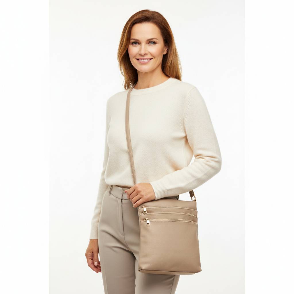 Elegantná a praktická mestská crossbody na každodenné nosenie. Kompaktná, no prekvapivo priestranná – ideálna na peňaženku, mobil, kľúče, kozmetiku aj malý diár (A4 sa nezmestí).