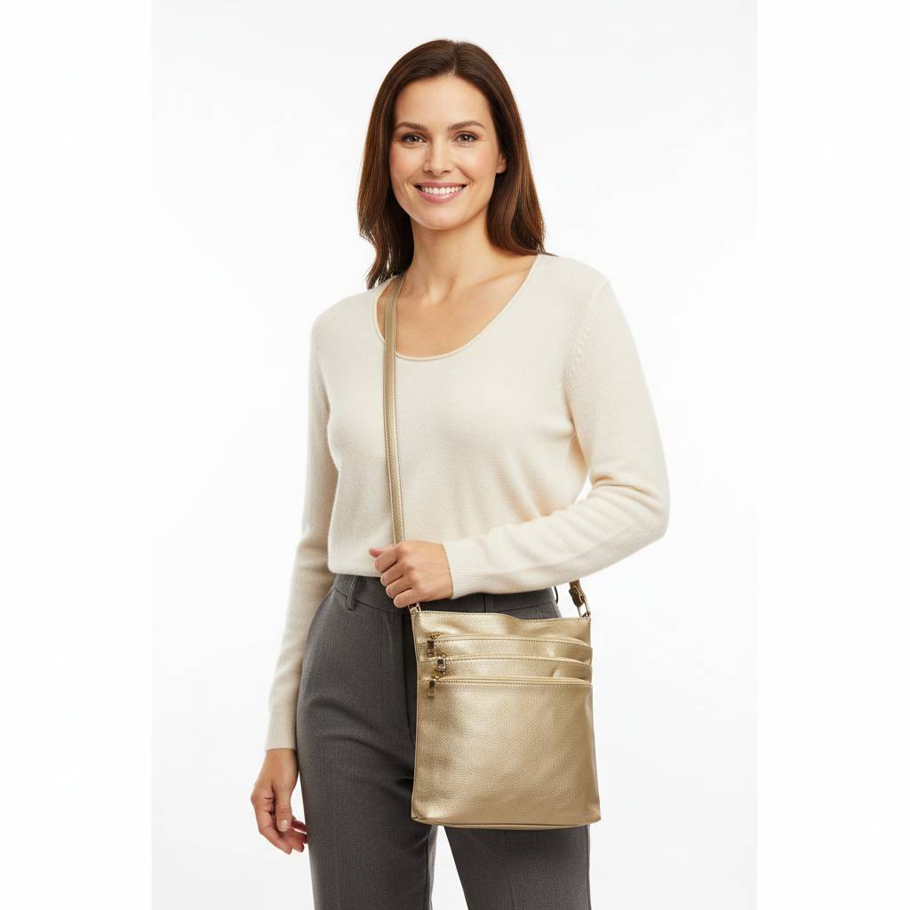 Elegantná a praktická mestská crossbody na každodenné nosenie. Kompaktná, no prekvapivo priestranná – ideálna na peňaženku, mobil, kľúče, kozmetiku aj malý diár (A4 sa nezmestí).
