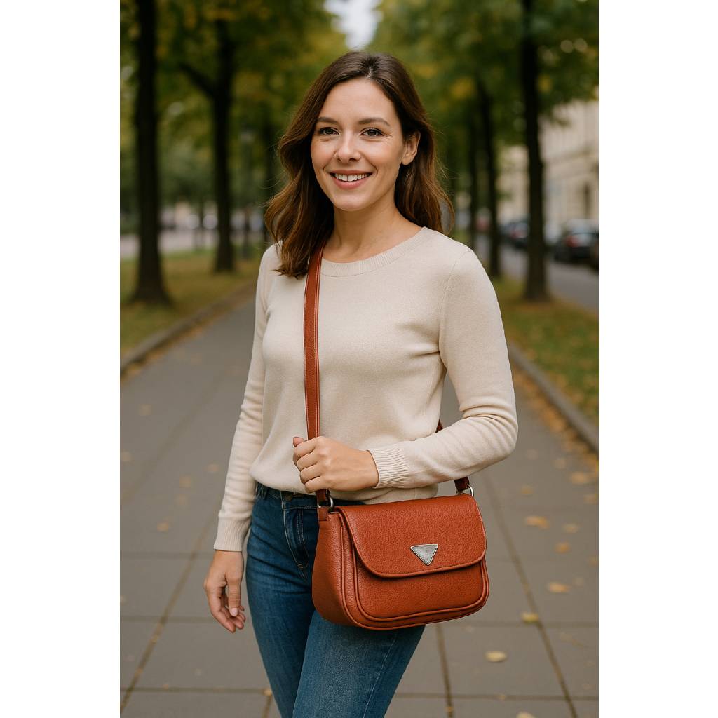 Nastaviteľný ramenný popruh umožňuje nosenie cez rameno aj krížom cez telo, čo zaručuje maximálny komfort a pohodlie počas celého dňa. Moderný dizajn s decentným kovovým detailom na prednej klopke robí z tejto kabelky univerzálny kúsok vhodný do práce, na nákupy, cestovanie či stretnutia s priateľmi.
