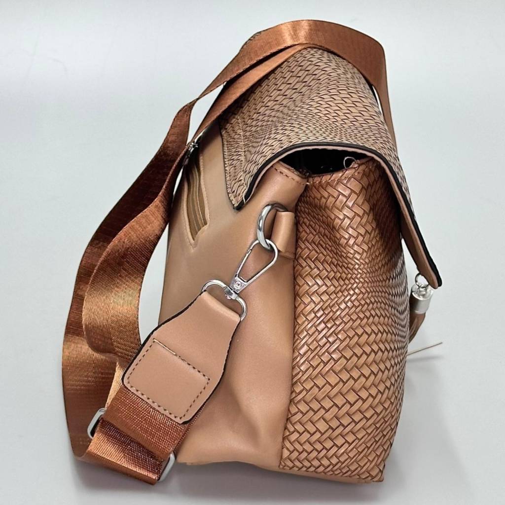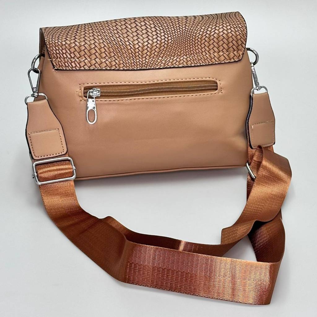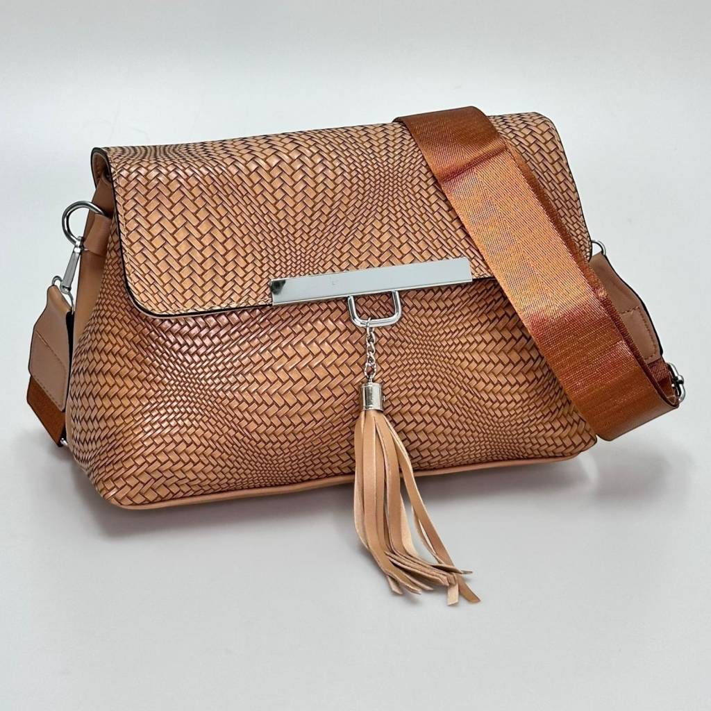 Dámska crossbody kabelka v elegantnom dizajne s prepracovaným pleteným vzorom na prednej strane. Uzatváranie na magnet a zips poskytuje bezpečnosť, vo vnútri sú praktické priehradky na usporiadanie vecí. Kabelka má nastaviteľný popruh pre pohodlné nosenie a ozdobnú strapcovú prívesku, ktorá jej dodáva štýlový vzhľad. Ideálna na každodenné nosenie aj špeciálne príležitosti.