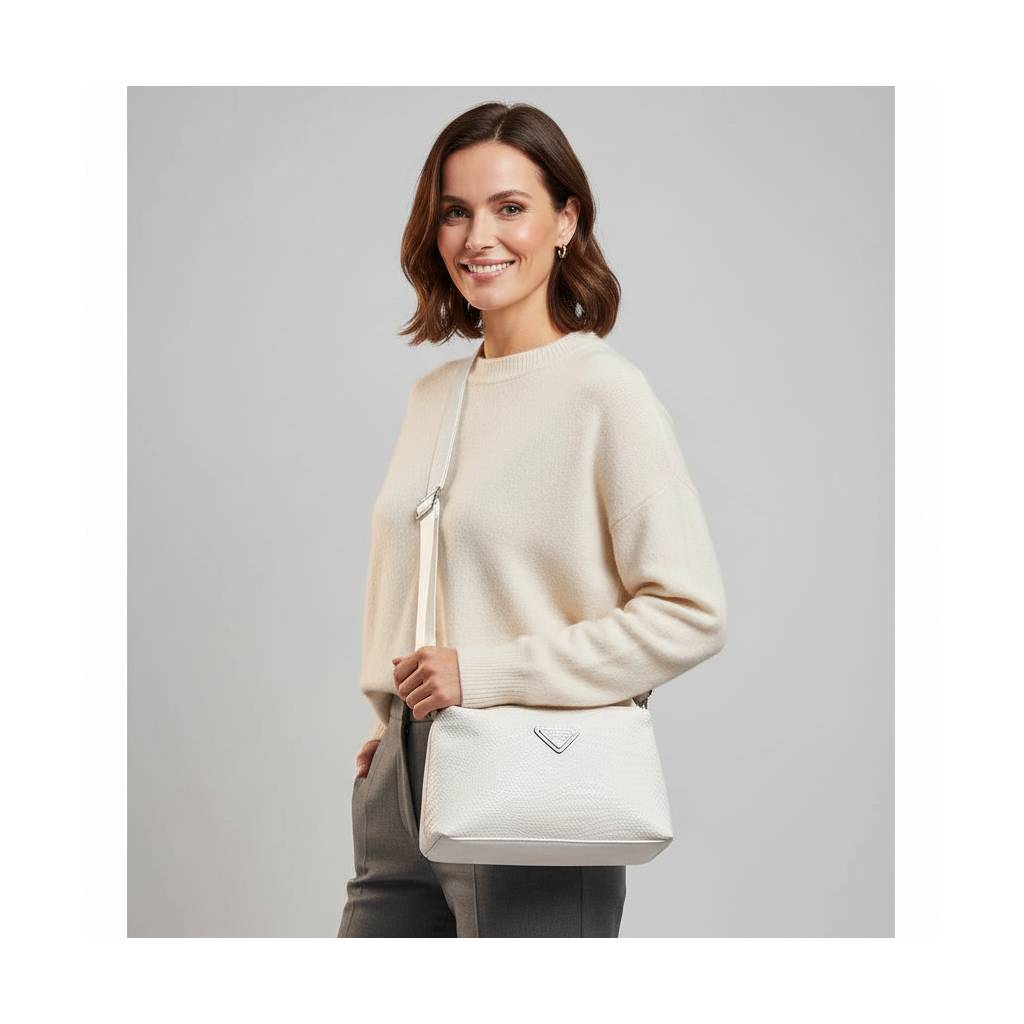 Dámska crossbody kabelka v elegantnom dizajne s prepracovaným pleteným vzorom na prednej strane. Uzatváranie na zips poskytuje bezpečnosť, vo vnútri sú praktické priehradky na usporiadanie vecí. Kabelka má nastaviteľný popruh pre pohodlné nosenie a ozdobnú strapcovú prívesku, ktorá jej dodáva štýlový vzhľad. Ideálna na každodenné nosenie aj špeciálne príležitosti.