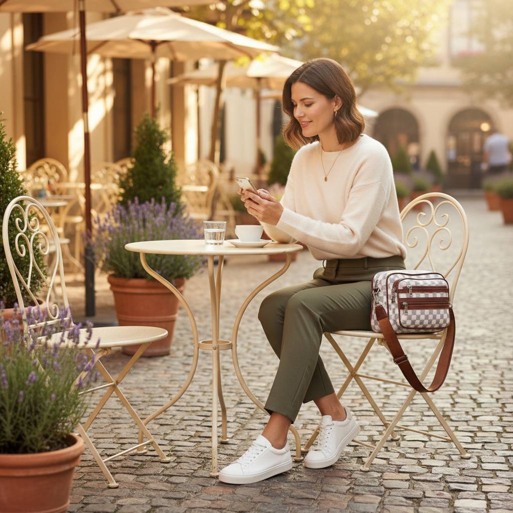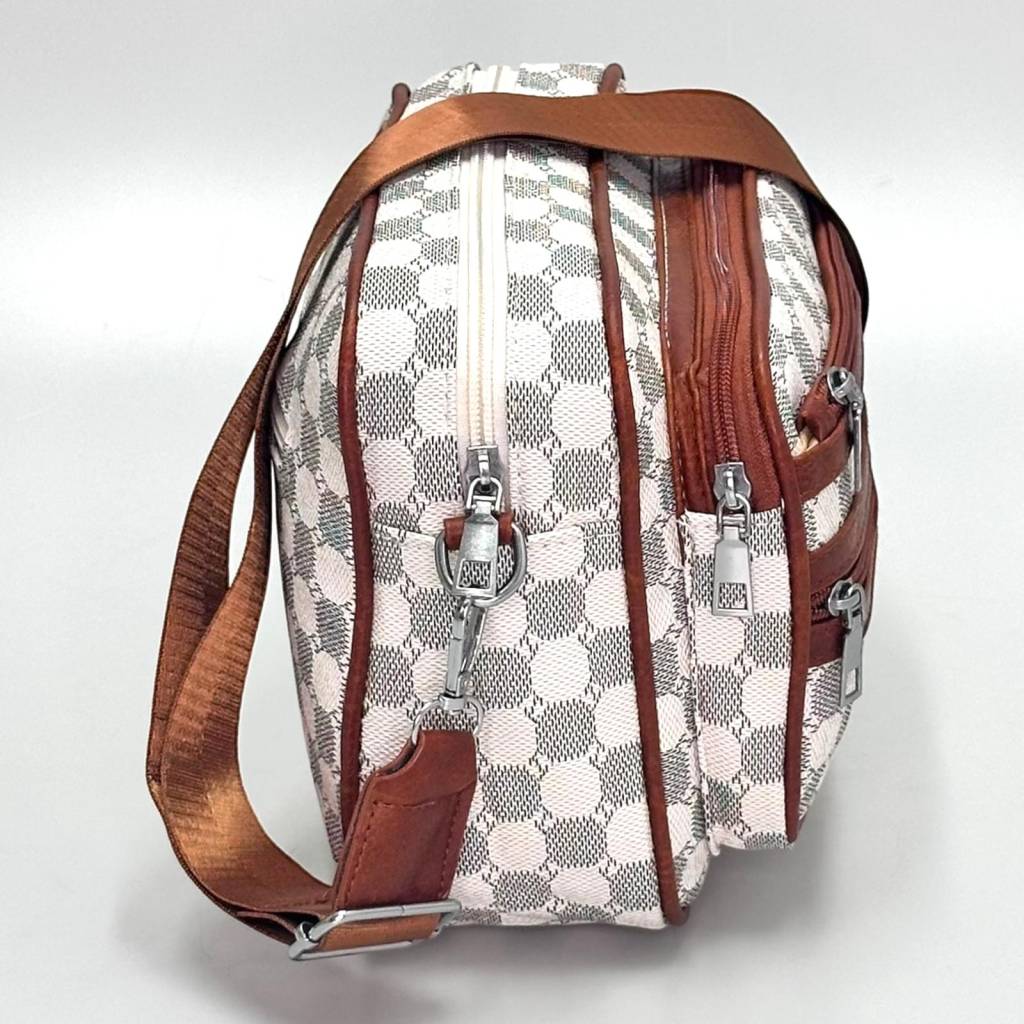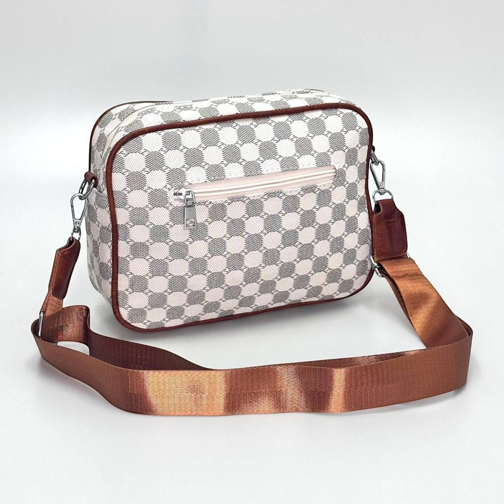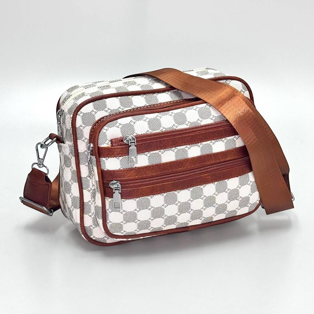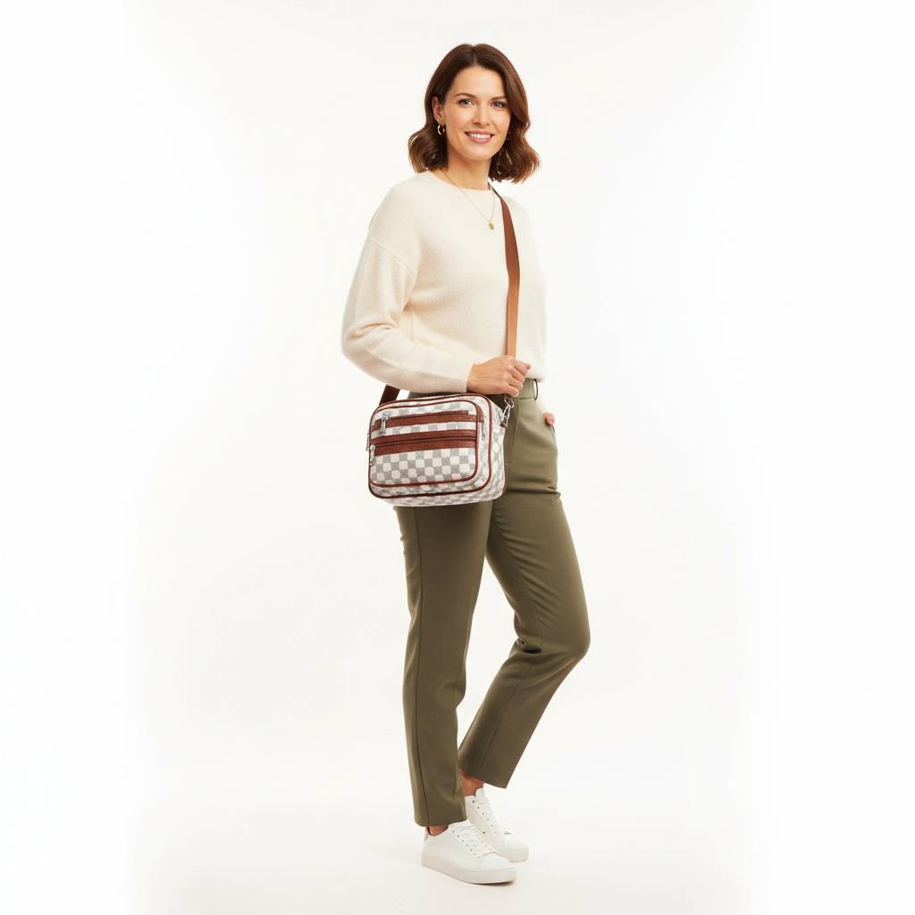 Trendy mestská crossbody kabelka s nadčasovým kockovaným vzorom a praktickými vreckami na zips. Ľahká, odolná a ideálna na každý deň – do práce, do mesta aj na cestovanie.