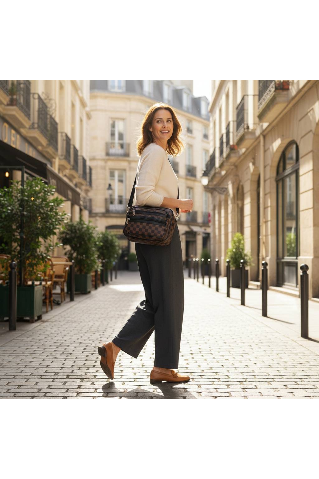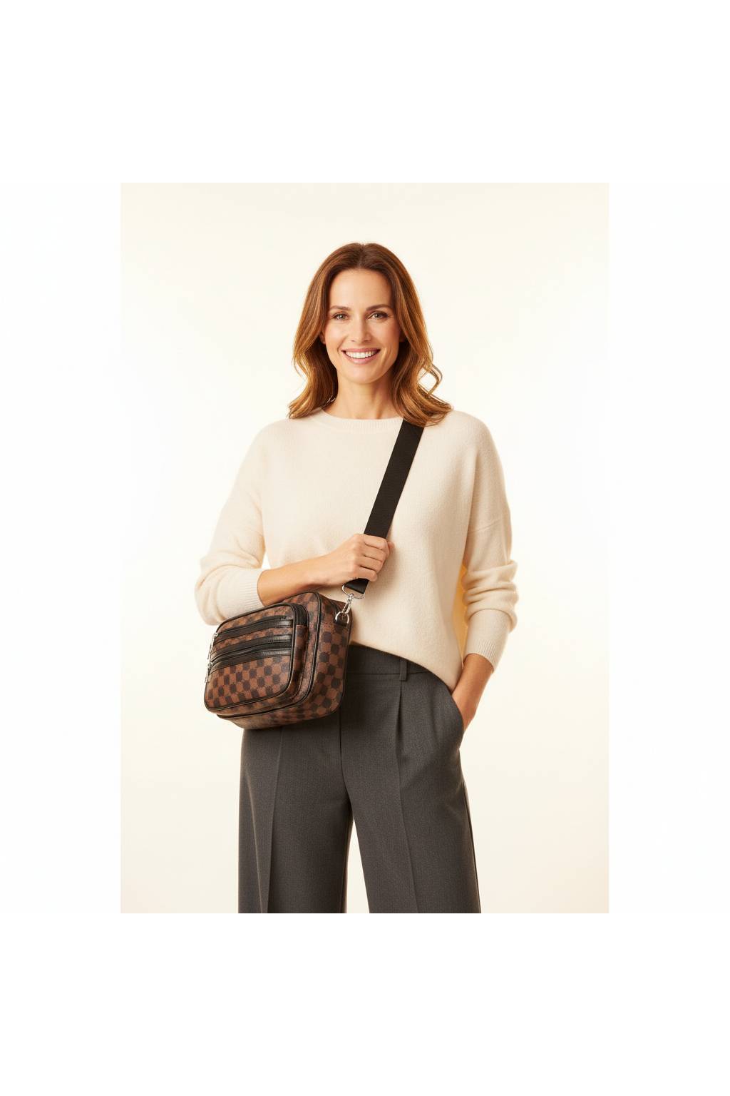 Trendy mestská crossbody kabelka s nadčasovým kockovaným vzorom a praktickými vreckami na zips. Ľahká, odolná a ideálna na každý deň – do práce, do mesta aj na cestovanie.