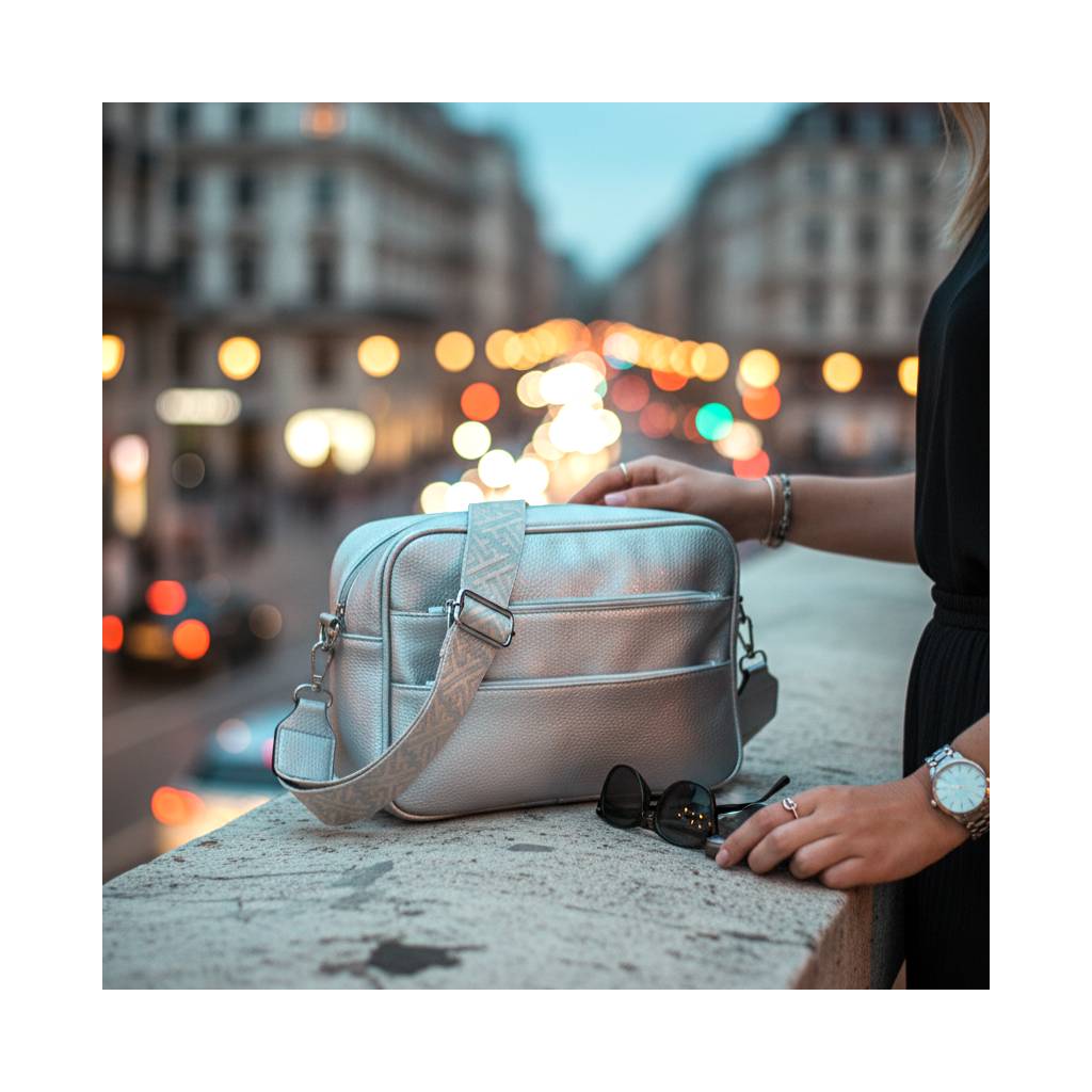 Dámska crossbody kabelka v modernom prevedení so štýlovým popruhom s nápisom . Kabelka ponúka viacero priehradiek na zips pre prehľadné uloženie vecí na prednej strane 2 a zadnej 1. Vďaka nastaviteľnému popruhu je ideálna na každodenné nosenie aj voľnočasové aktivity.