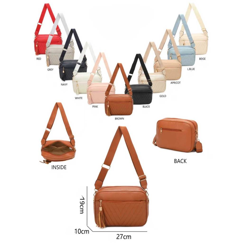 Štýlová mestská crossbody kabelka s decentným prešívaním a ozdobným strapcom. Ideálna na každý deň, do práce, do mesta aj na výlety – kompaktná, ale prekvapivo priestranná.