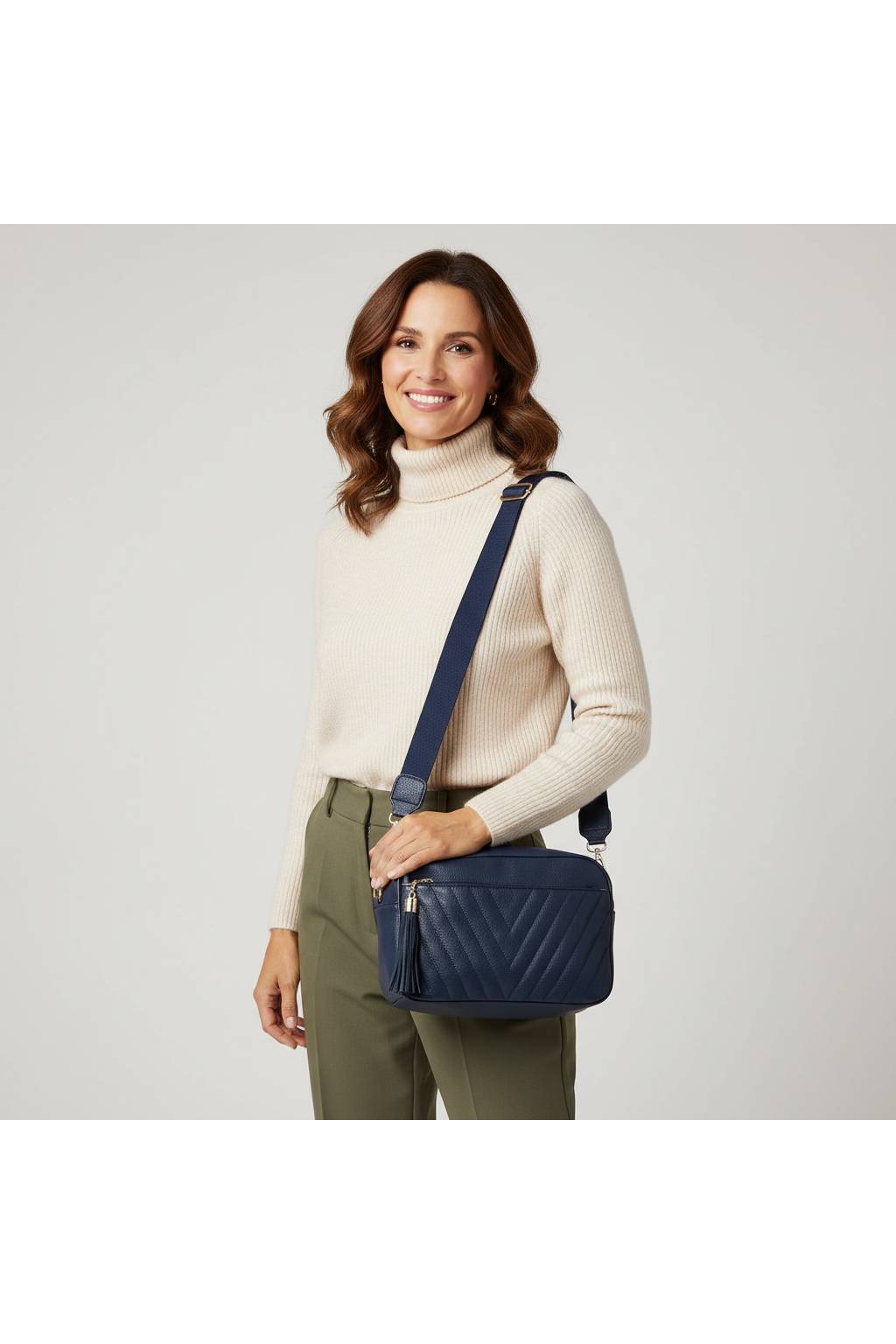 Štýlová mestská crossbody kabelka s decentným prešívaním a ozdobným strapcom. Ideálna na každý deň, do práce, do mesta aj na výlety – kompaktná, ale prekvapivo priestranná.