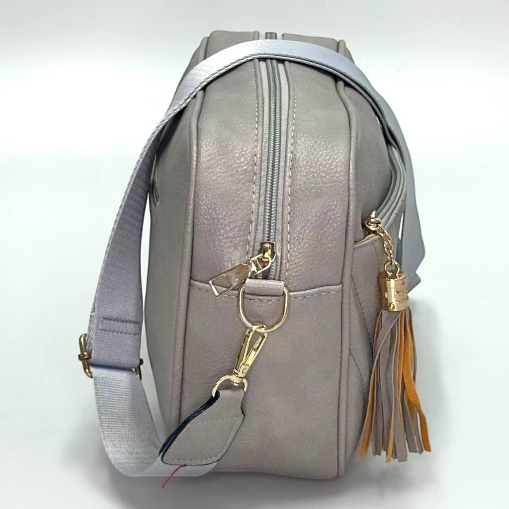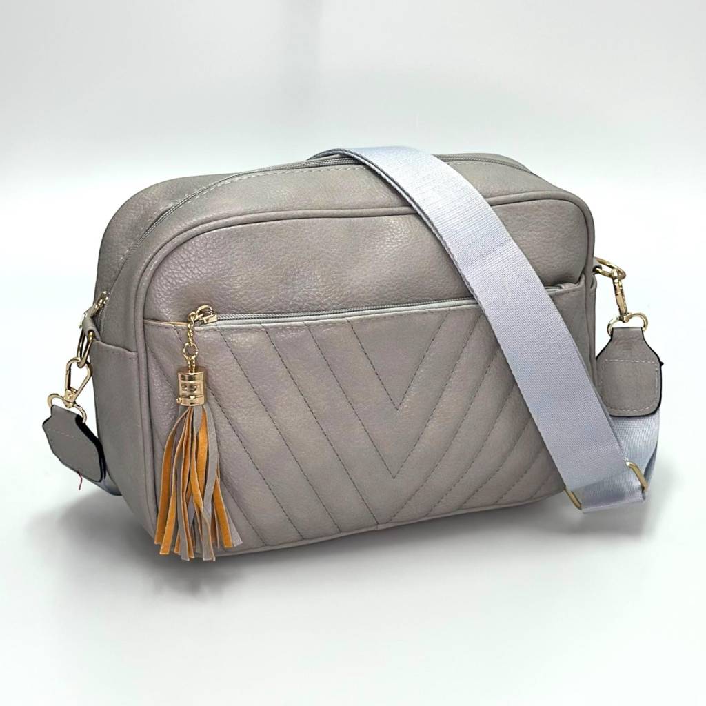 Štýlová mestská crossbody kabelka s decentným prešívaním a ozdobným strapcom. Ideálna na každý deň, do práce, do mesta aj na výlety – kompaktná, ale prekvapivo priestranná.