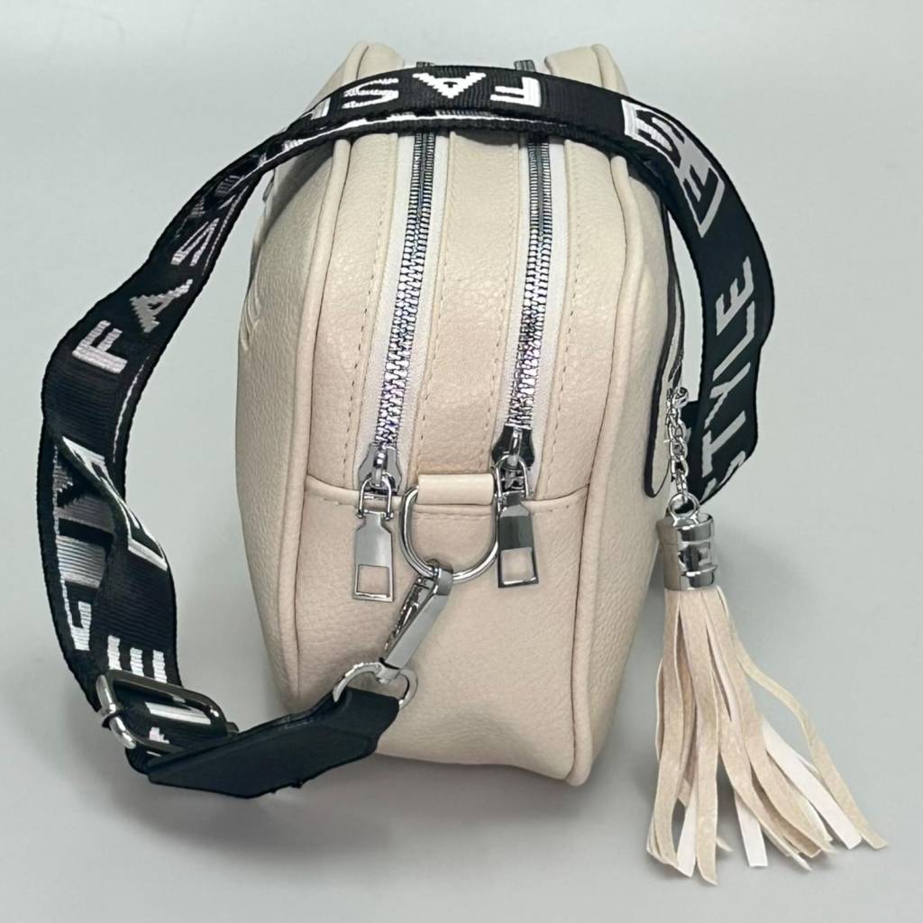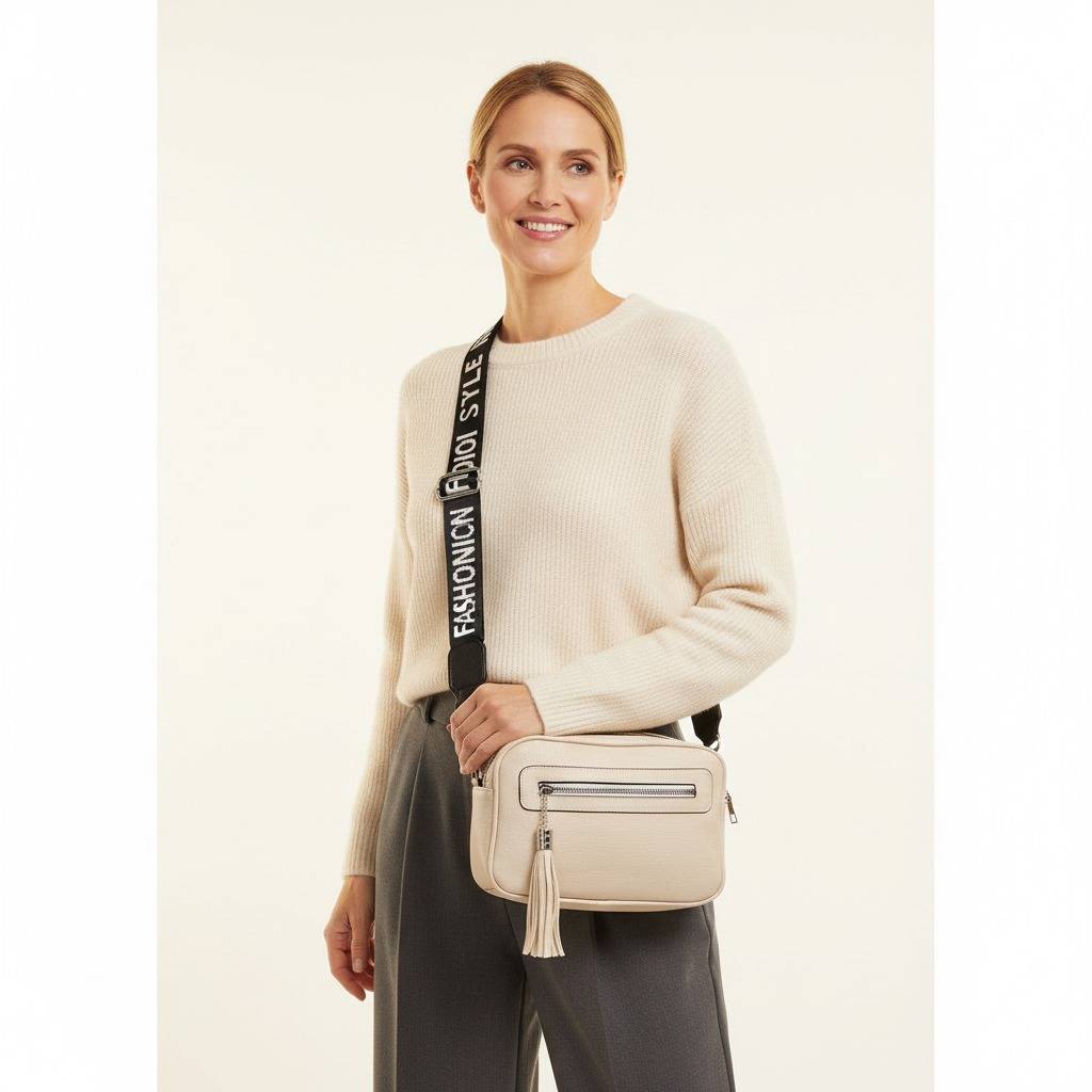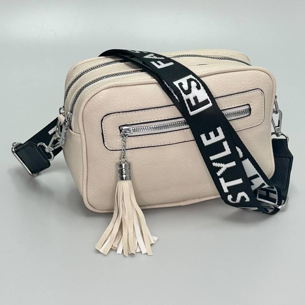Dámska crossbody kabelka v modernom prevedení so štýlovým popruhom s nápisom FASHION STYLE. Kabelka ponúka viacero priehradiek na zips pre prehľadné uloženie vecí a ozdobný strapec na prednej strane. Vďaka nastaviteľnému popruhu je ideálna na každodenné nosenie aj voľnočasové aktivity.