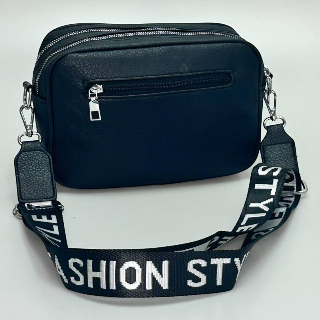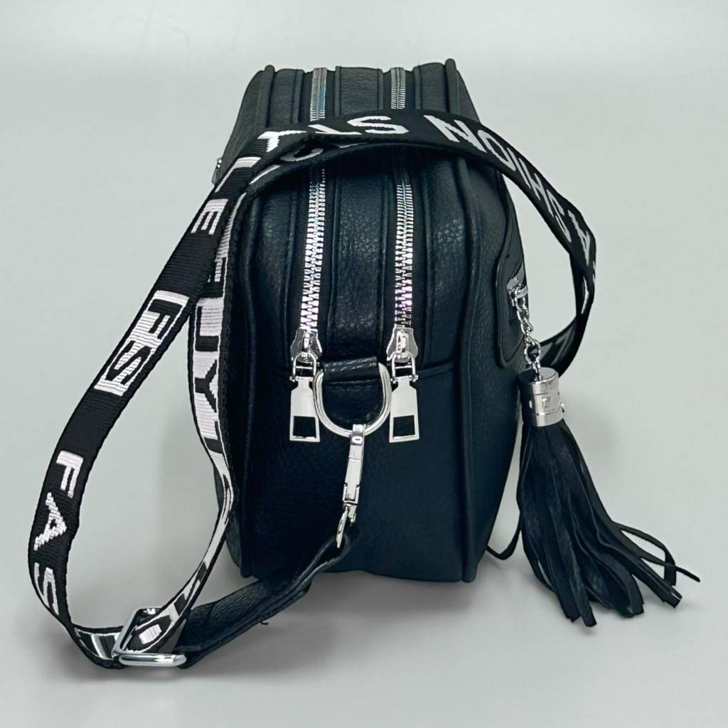 Dámska crossbody kabelka v modernom čiernom prevedení so štýlovým popruhom s nápisom FASHION STYLE. Kabelka ponúka viacero priehradiek na zips pre prehľadné uloženie vecí a ozdobný strapec na prednej strane. Vďaka nastaviteľnému popruhu je ideálna na každodenné nosenie aj voľnočasové aktivity.