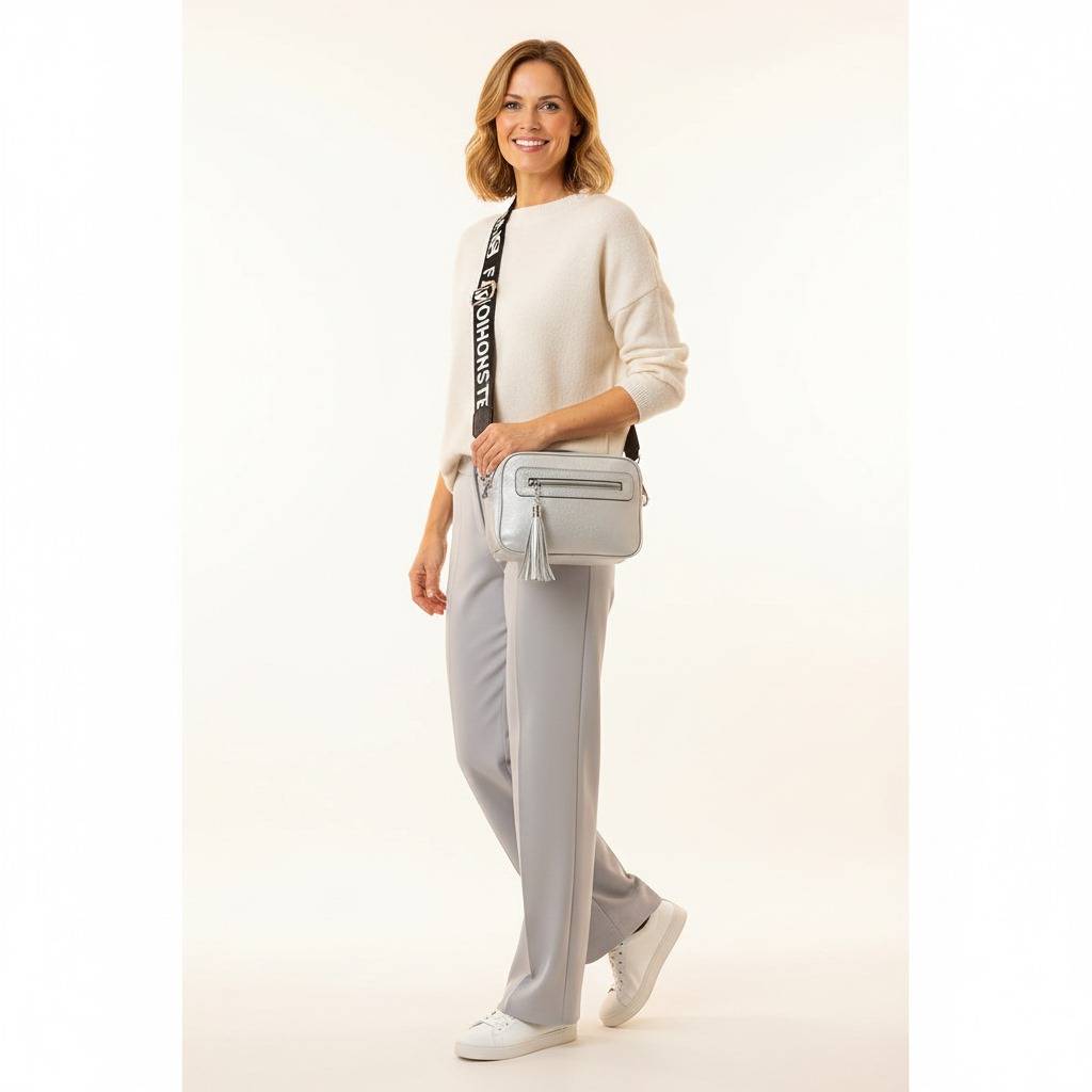 Dámska crossbody kabelka v modernom prevedení so štýlovým popruhom s nápisom FASHION STYLE. Kabelka ponúka viacero priehradiek na zips pre prehľadné uloženie vecí a ozdobný strapec na prednej strane. Vďaka nastaviteľnému popruhu je ideálna na každodenné nosenie aj voľnočasové aktivity.