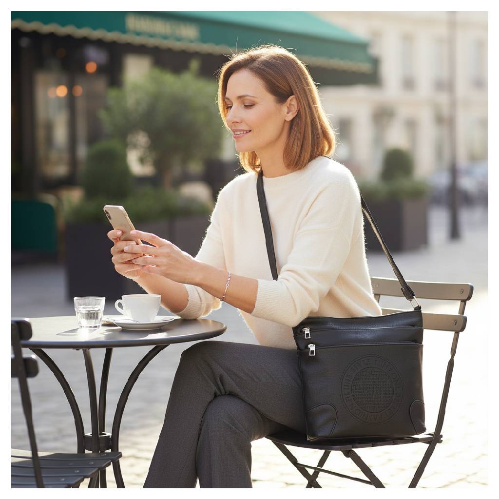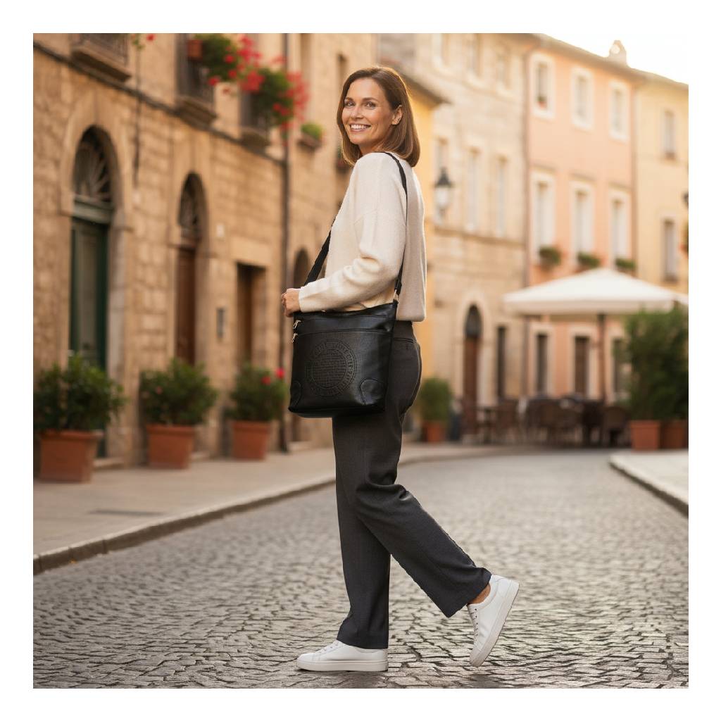 Dámska crossbody kabelka v elegantnom prevedení. Praktický model s dvomi prednými vreckami na zips a reliéfnym zdobením na prednej strane. Nastaviteľný popruh umožňuje pohodlné nosenie krížom cez telo aj na pleci. Ideálna na každodenné používanie vďaka svojmu priestrannému a funkčnému prevedeniu.