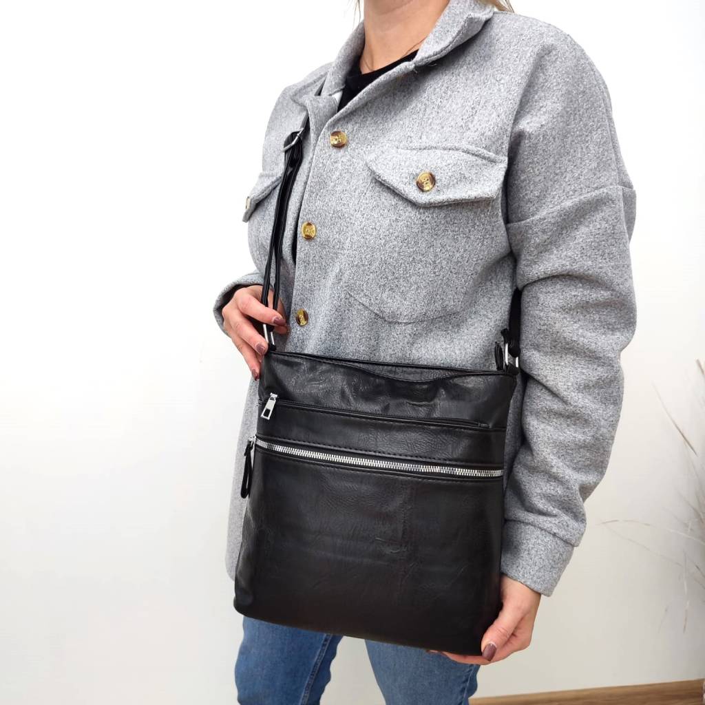 Štýlová dámska crossbody kabelka s 2 kapsami na zips na prednej strane.