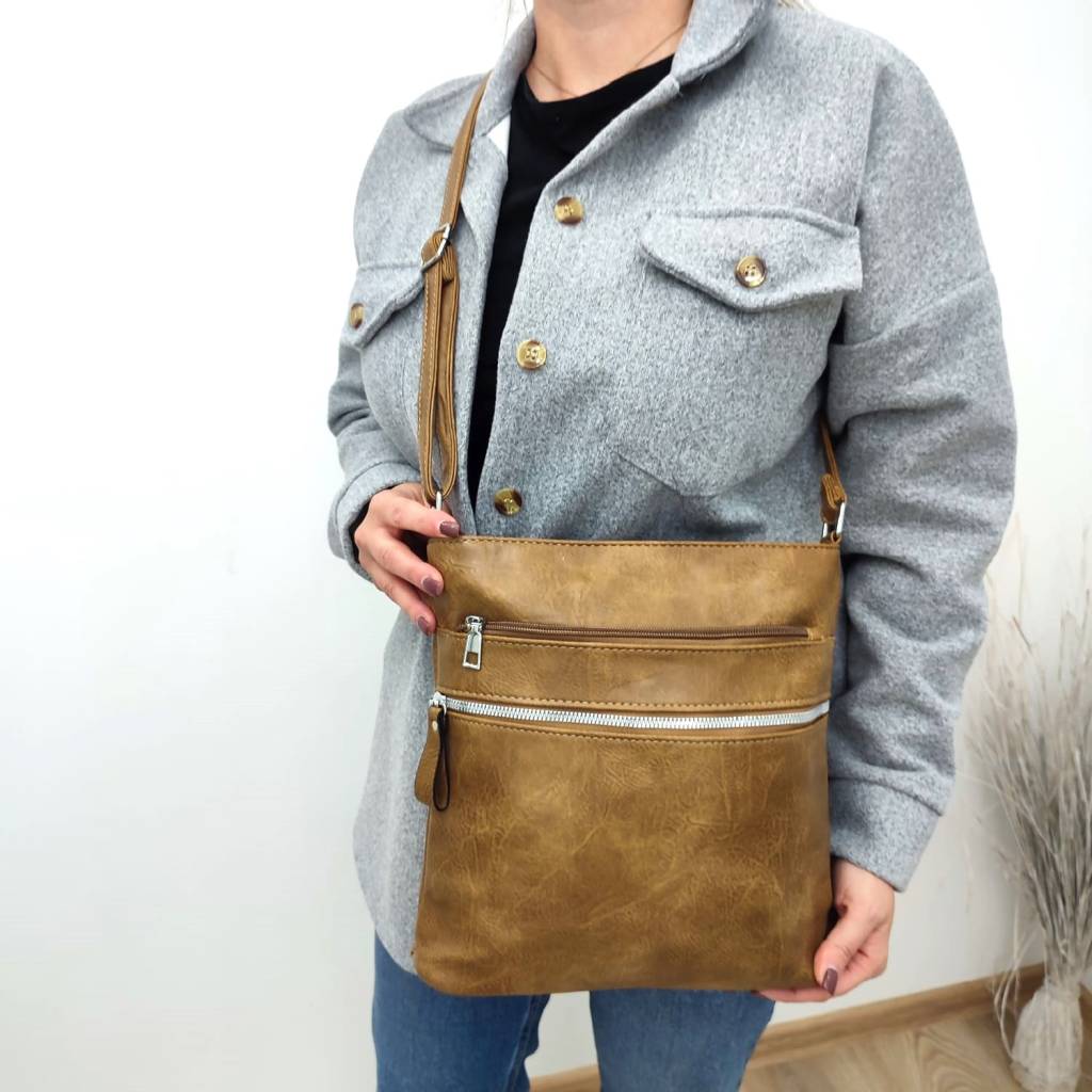 Štýlová dámska crossbody kabelka s 2 kapsami na zips na prednej strane.
