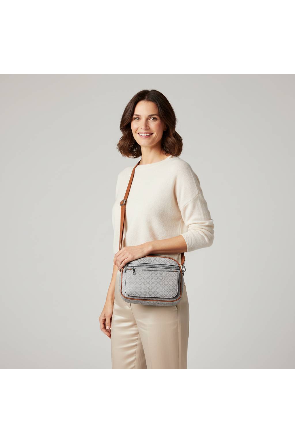 Dámska elegantná crossbody kabelka 1754-Z8-13715 sivá