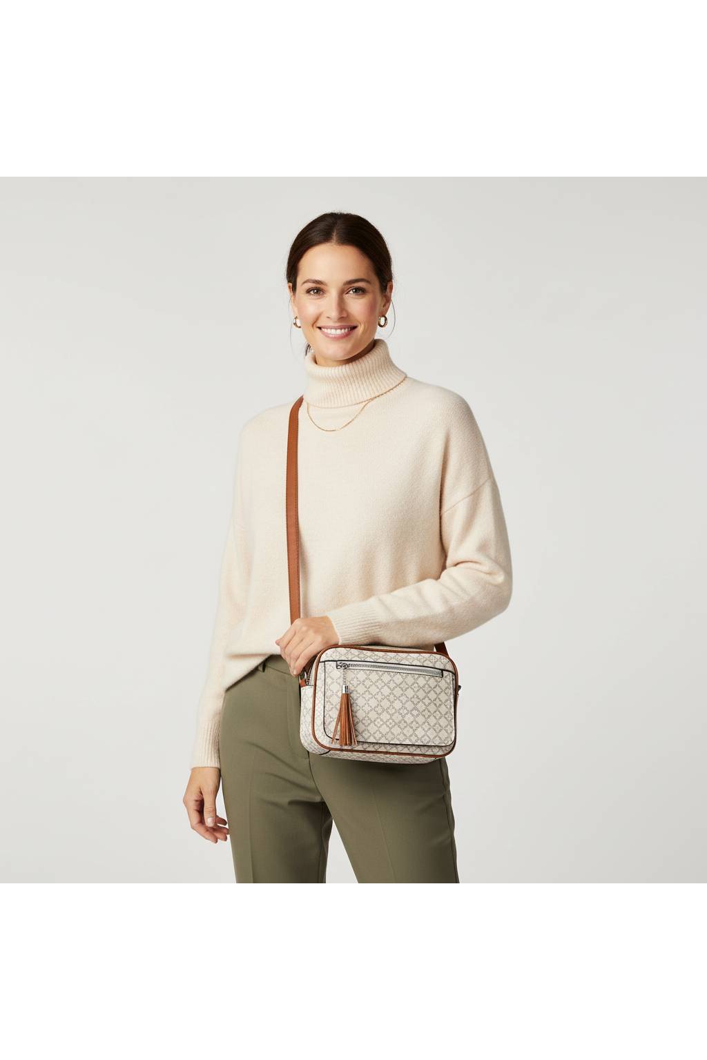 Dámska elegantná crossbody kabelka 1754-Z8-13921 béžová