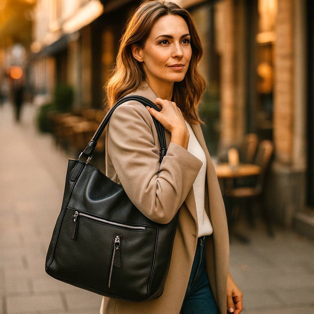 Priestranná a moderná dámska kabelka, ktorá vďaka svojim rozmerom ponúka dostatok úložného priestoru pre všetky potrebné veci.
