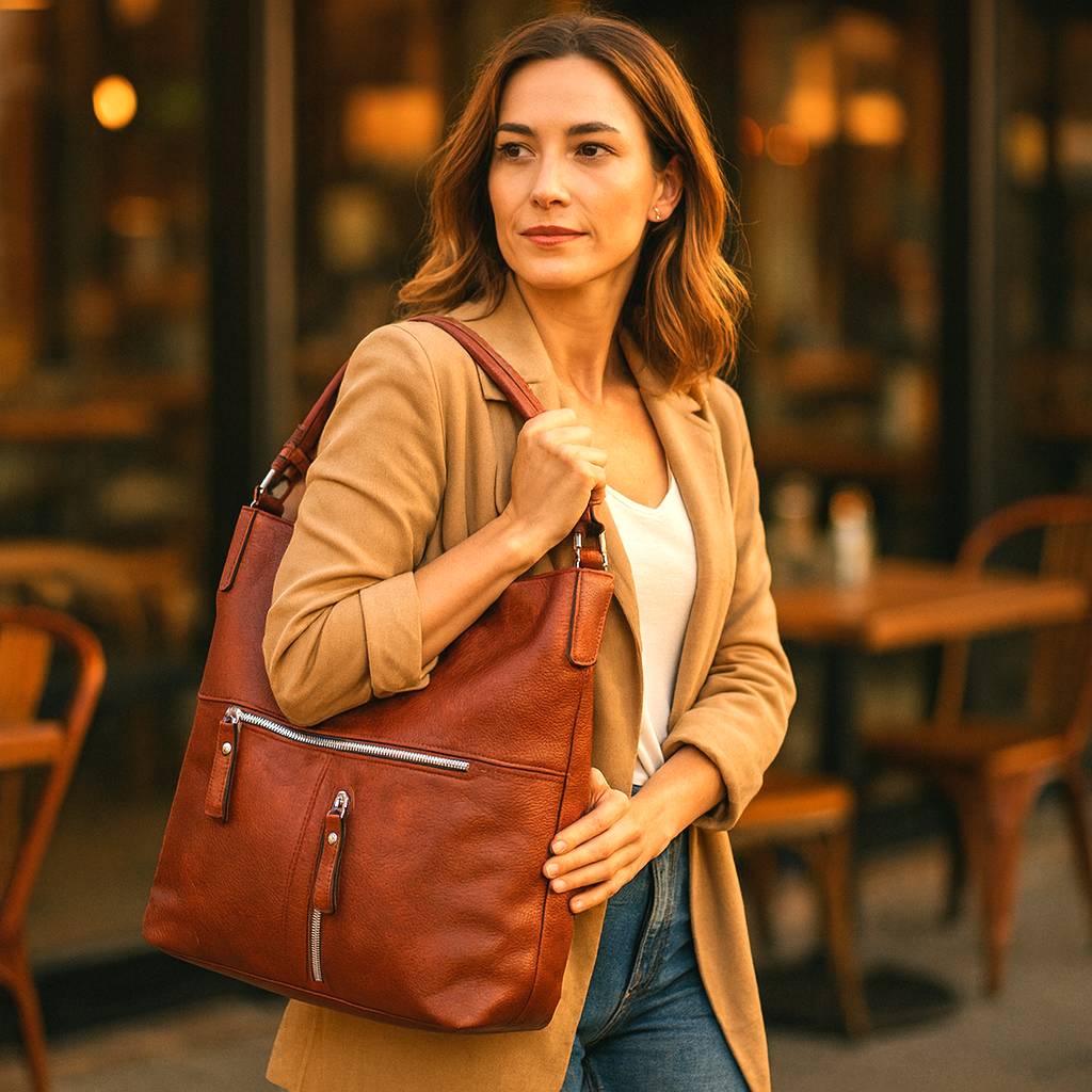 Priestranná a moderná dámska kabelka, ktorá vďaka svojim rozmerom ponúka dostatok úložného priestoru pre všetky potrebné veci.
