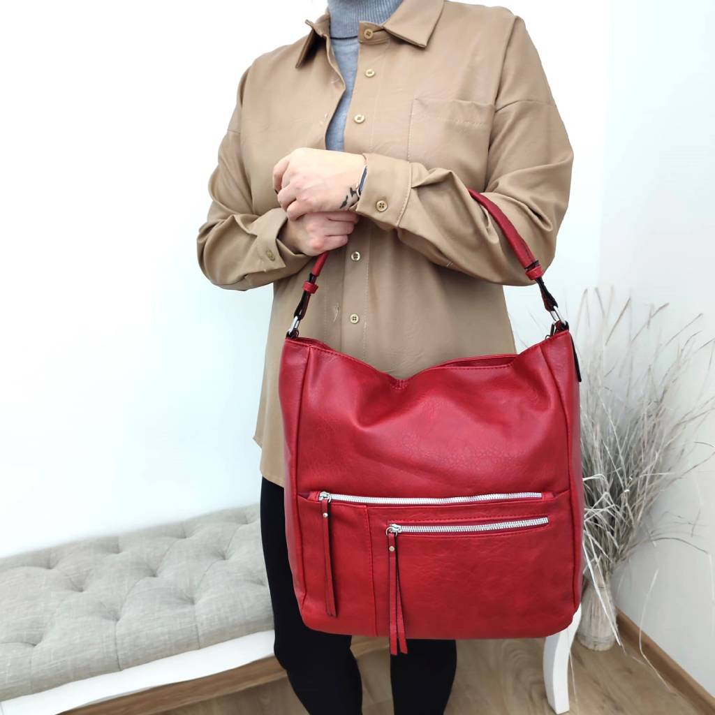 Priestranná a moderná dámska kabelka, ktorá vďaka svojim rozmerom ponúka dostatok úložného priestoru pre všetky potrebné veci.