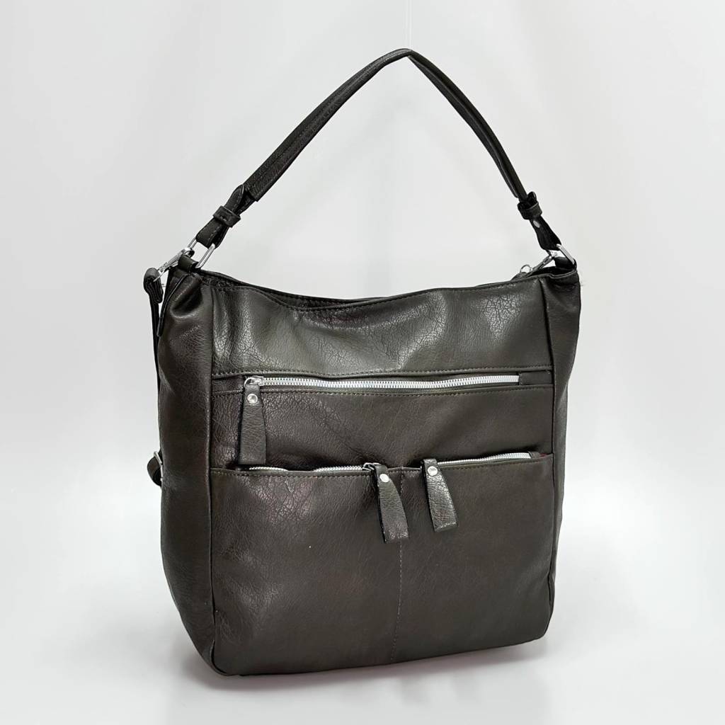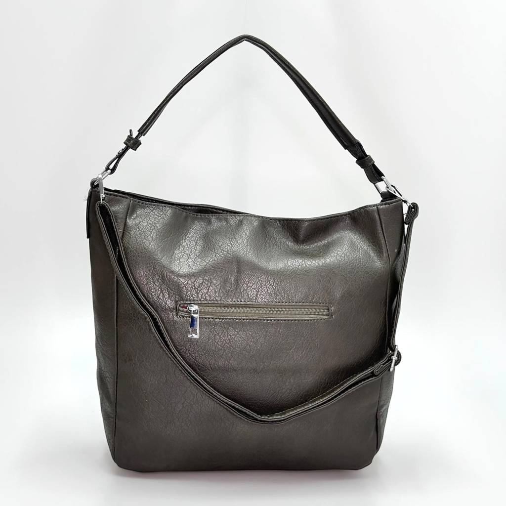 Kabelka ponúka veľký hlavný priestor so zapínaním na zips, ktorý pohodlne pojme všetky vaše každodenné nevyhnutnosti. Na prednej strane sa nachádzajú až štyri praktické vrecká na zips, ideálne na mobil, kľúče alebo menšie predmety, ktoré potrebujete mať vždy po ruke. Na zadnej strane je umiestnené ďalšie vrecko so zipsom.