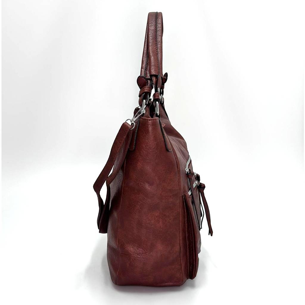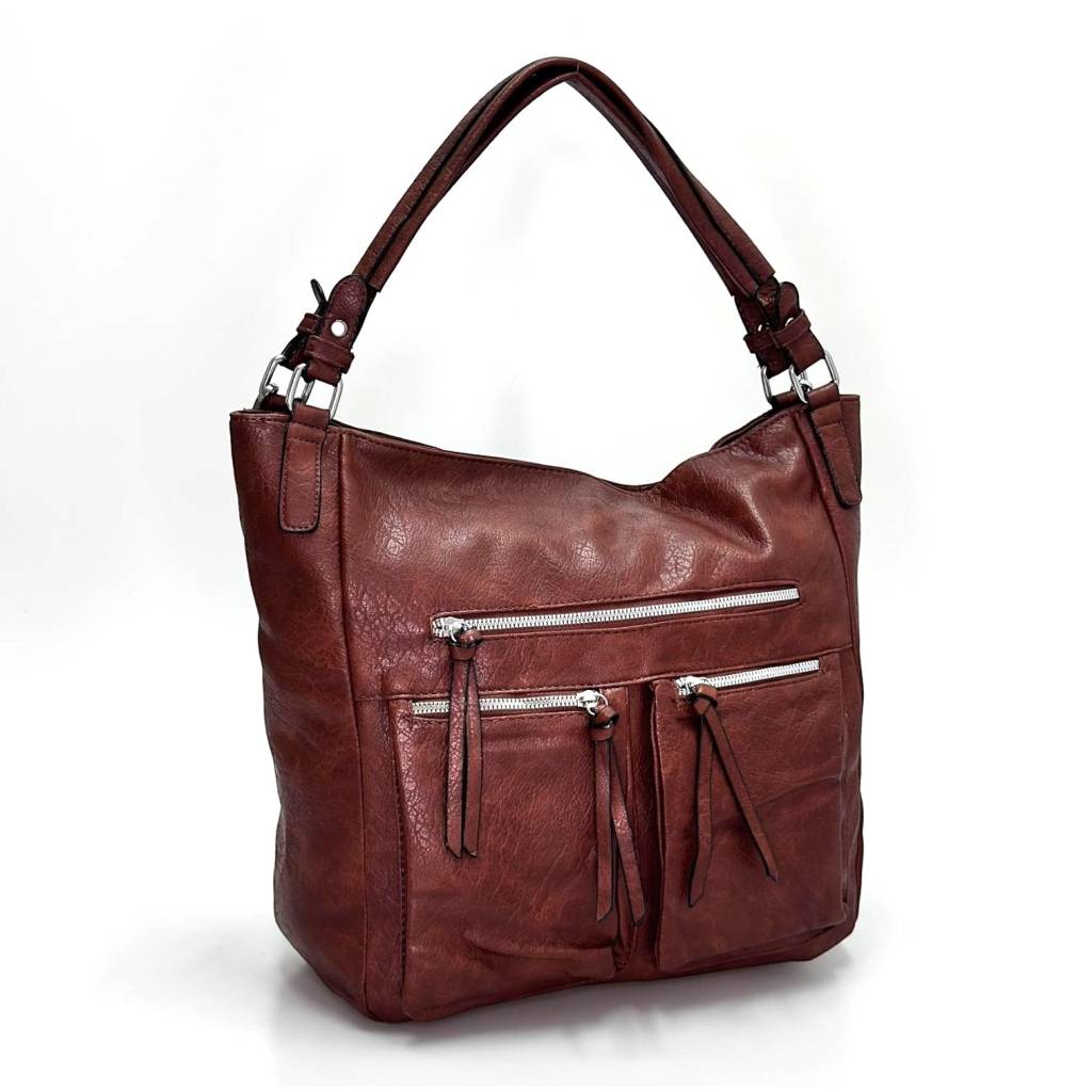 Kabelka ponúka veľký hlavný priestor so zapínaním na zips, ktorý pohodlne pojme všetky vaše každodenné nevyhnutnosti. Na prednej strane sa nachádzajú až štyri praktické vrecká na zips, ideálne na mobil, kľúče alebo menšie predmety, ktoré potrebujete mať vždy po ruke. Na zadnej strane je umiestnené ďalšie vrecko so zipsom.
