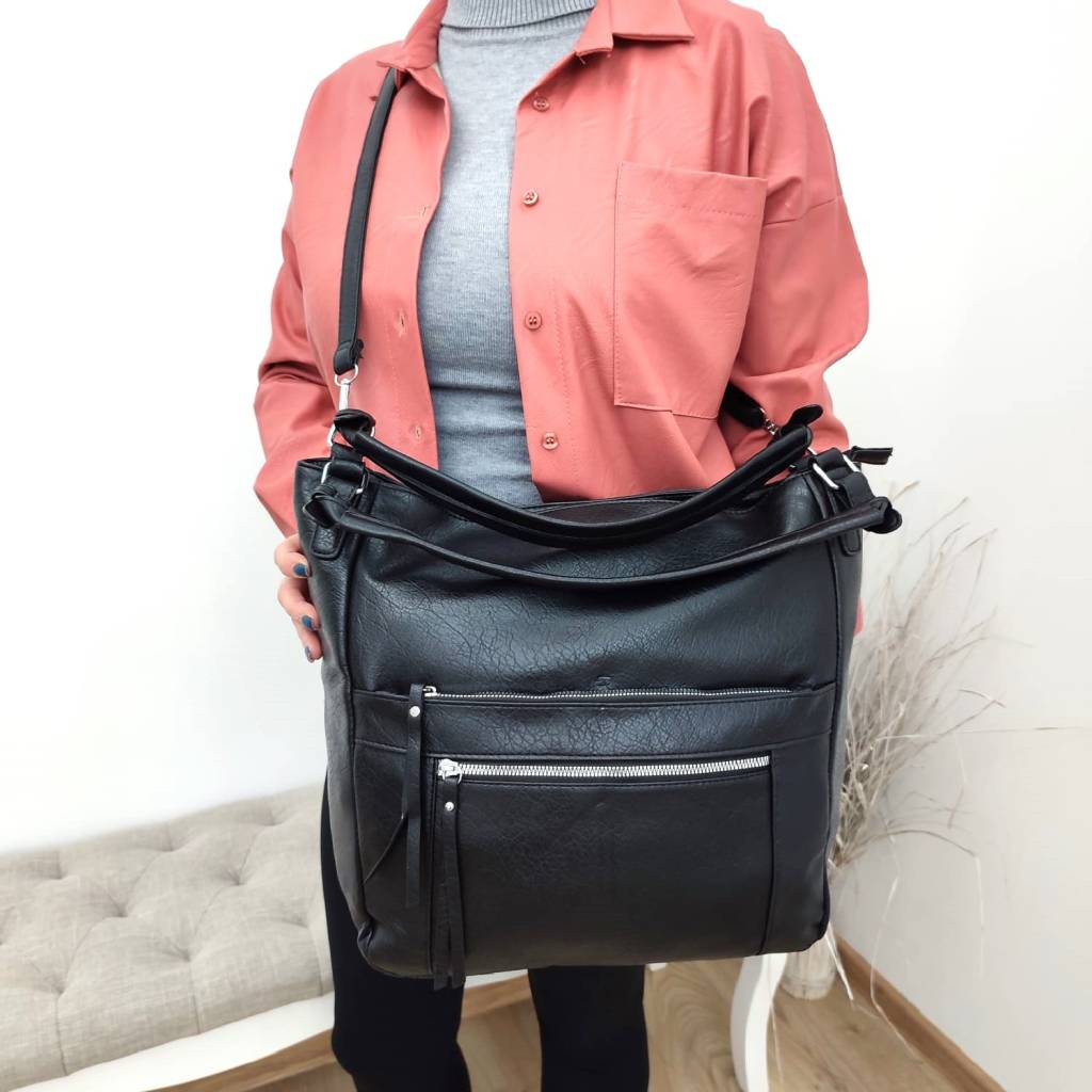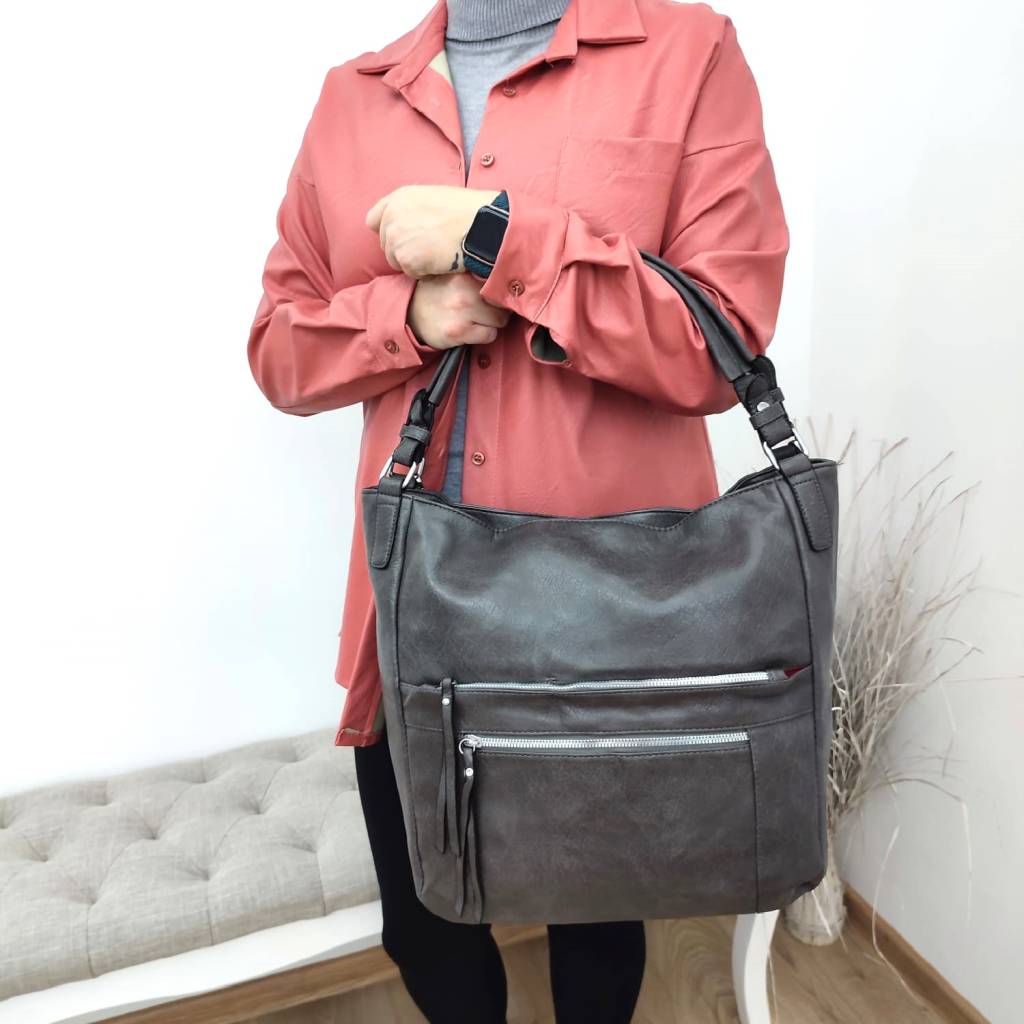 Priestranná a moderná dámska kabelka, ktorá vďaka svojim rozmerom ponúka dostatok úložného priestoru pre všetky potrebné veci.