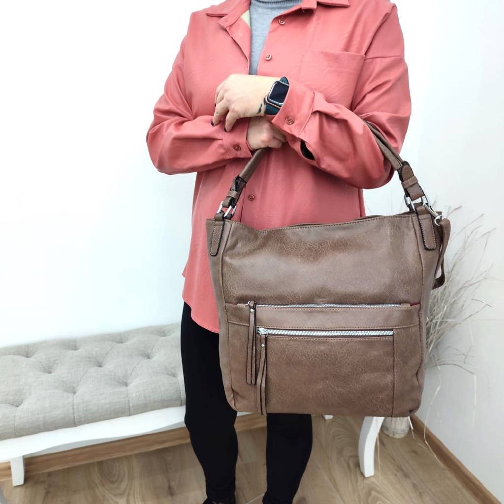 Priestranná a moderná dámska kabelka, ktorá vďaka svojim rozmerom ponúka dostatok úložného priestoru pre všetky potrebné veci.
