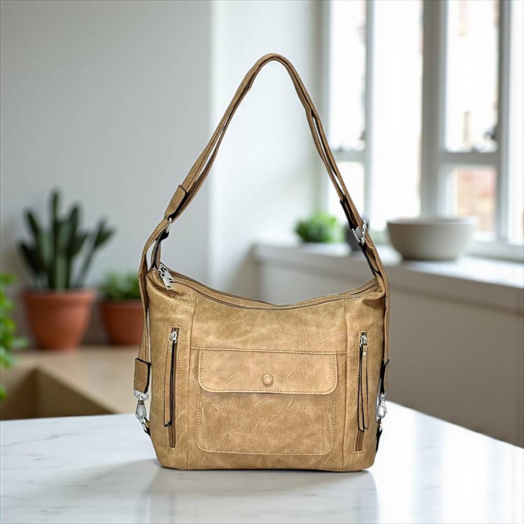 Štýlová a priestranná dámska kabelka, ktorú možno nosiť na 3 spôsoby - ako kabelku na rameno, crossbody alebo ako ruksak.