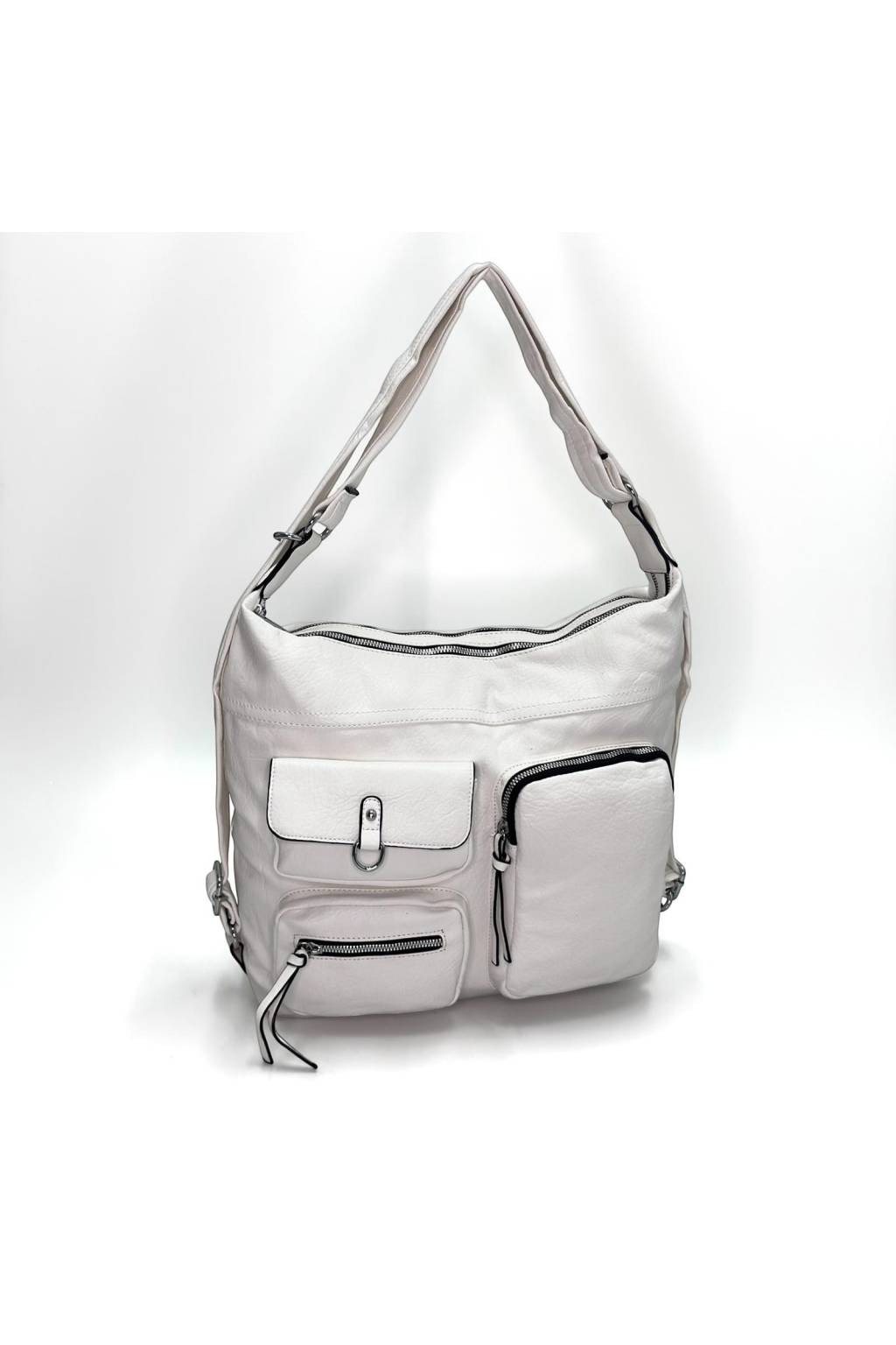 Hľadáte kabelku, ktorá vyzerá štýlovo, no zároveň je maximálne praktická? Tento model je presne ten typ, ktorý si zamilujete na každý deň. Vďaka šikovnému riešeniu 2v1 ju môžete nosiť ako klasickú kabelku na pleci alebo ako batoh – ideálne do mesta, do práce, na cestovanie aj na nákupy. Prednú časť dopĺňajú viaceré zipsové vrecká, takže všetko dôležité máte vždy poruke.