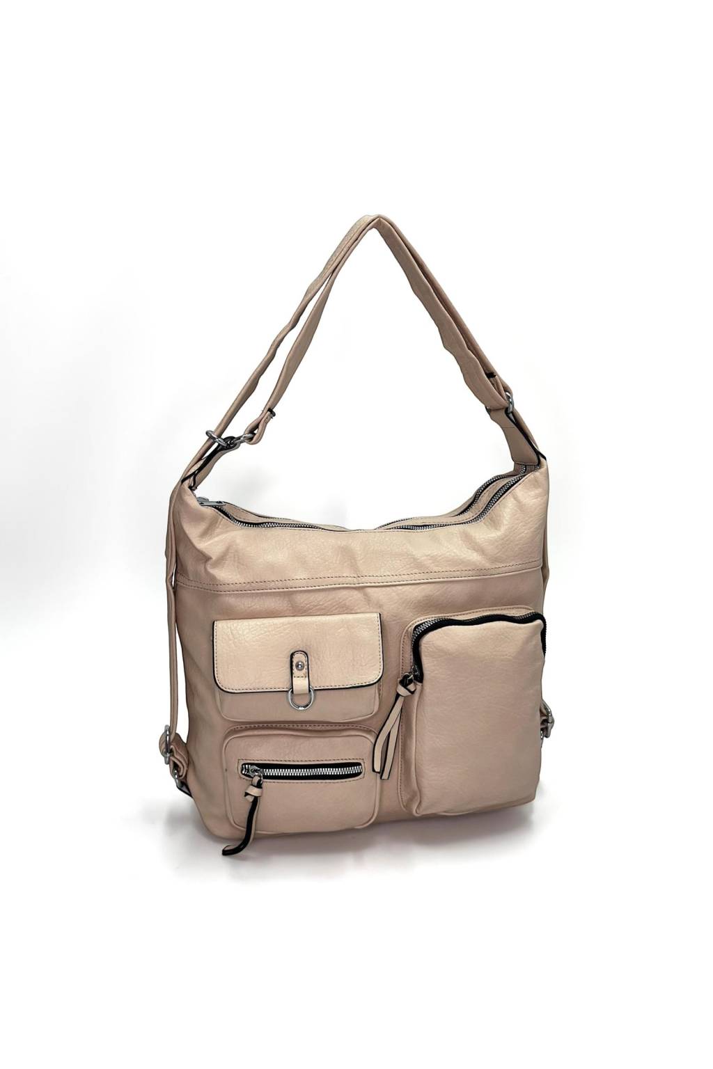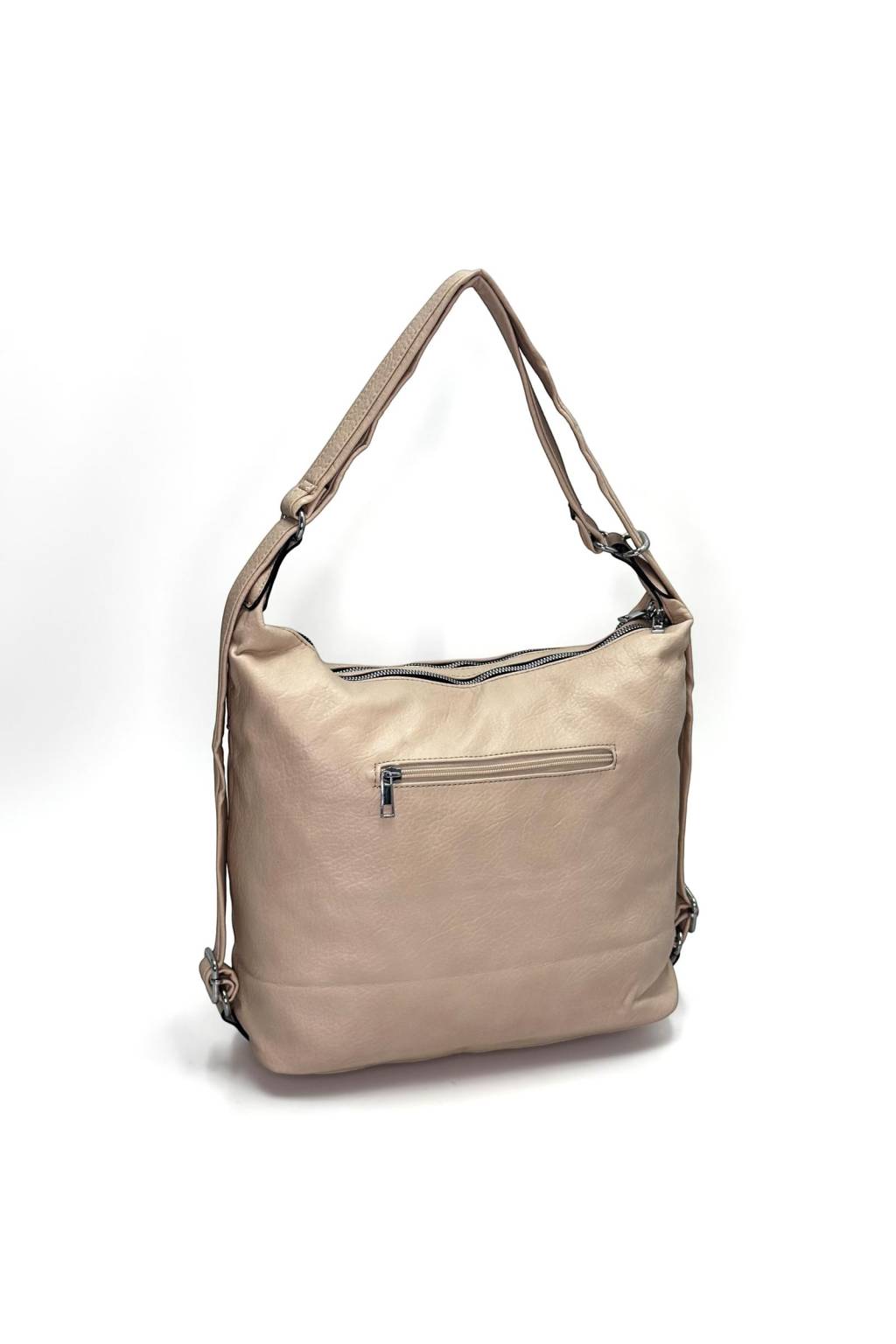 Hľadáte kabelku, ktorá vyzerá štýlovo, no zároveň je maximálne praktická? Tento model je presne ten typ, ktorý si zamilujete na každý deň. Vďaka šikovnému riešeniu 2v1 ju môžete nosiť ako klasickú kabelku na pleci alebo ako batoh – ideálne do mesta, do práce, na cestovanie aj na nákupy. Prednú časť dopĺňajú viaceré zipsové vrecká, takže všetko dôležité máte vždy poruke.