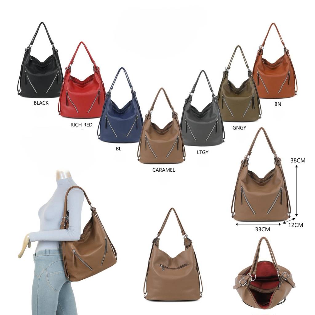 Priestranná hobo kabelka s mäkkým telom, dlhým ramenným uchom a praktickými zipsovými vreckami. Perfektná do práce, na nákupy aj voľný čas – zmestí sa diár, veľká peňaženka, kozmetika aj fľaša 0,5 l. Dostupná v niekoľkých farebných variantoch.