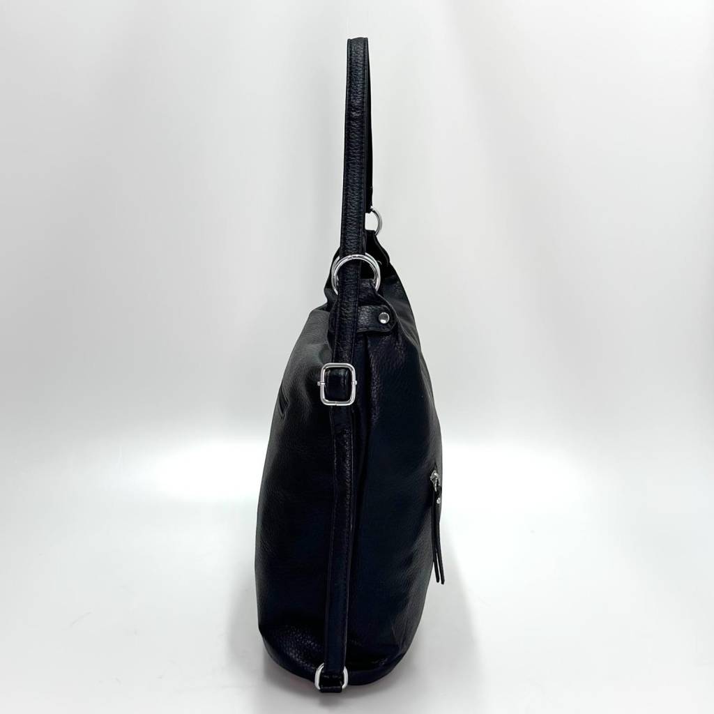 Priestranná hobo kabelka s mäkkým telom, dlhým ramenným uchom a praktickými zipsovými vreckami. Perfektná do práce, na nákupy aj voľný čas – zmestí sa diár, veľká peňaženka, kozmetika aj fľaša 0,5 l. Dostupná v niekoľkých farebných variantoch.