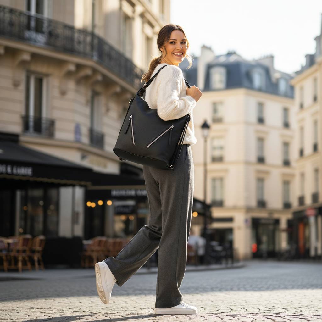 Univerzálny tvar „hobo“: drží si elegantný spád, pritom sa prispôsobí obsahu – ideálna na každodenné nosenie.