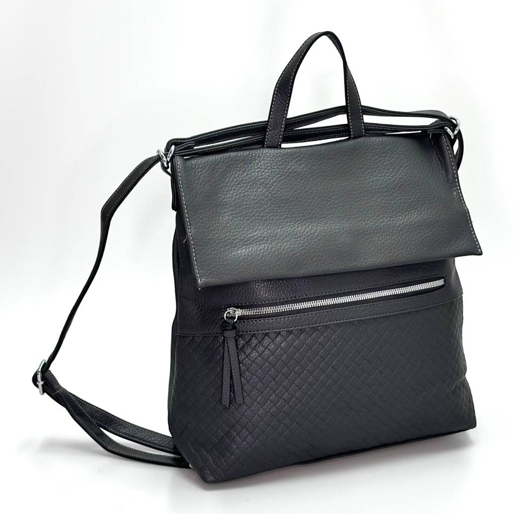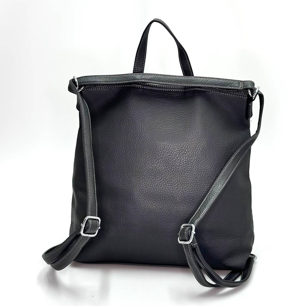 Univerzálny dámsky ruksak 2v1 s horným uchom a preklopnou chlopňou. Vďaka nastaviteľným popruhom ho pohodlne nosíte na chrbte aj cez rameno ako kabelku. Mäkká, na dotyk príjemná eko koža, podšívka, kvalitné kovanie. Zmestí A4, fľašu na vodu, peňaženku aj denné potreby. Dostupný vo viacerých farebných variantoch, aby ladil k vášmu šatníku.