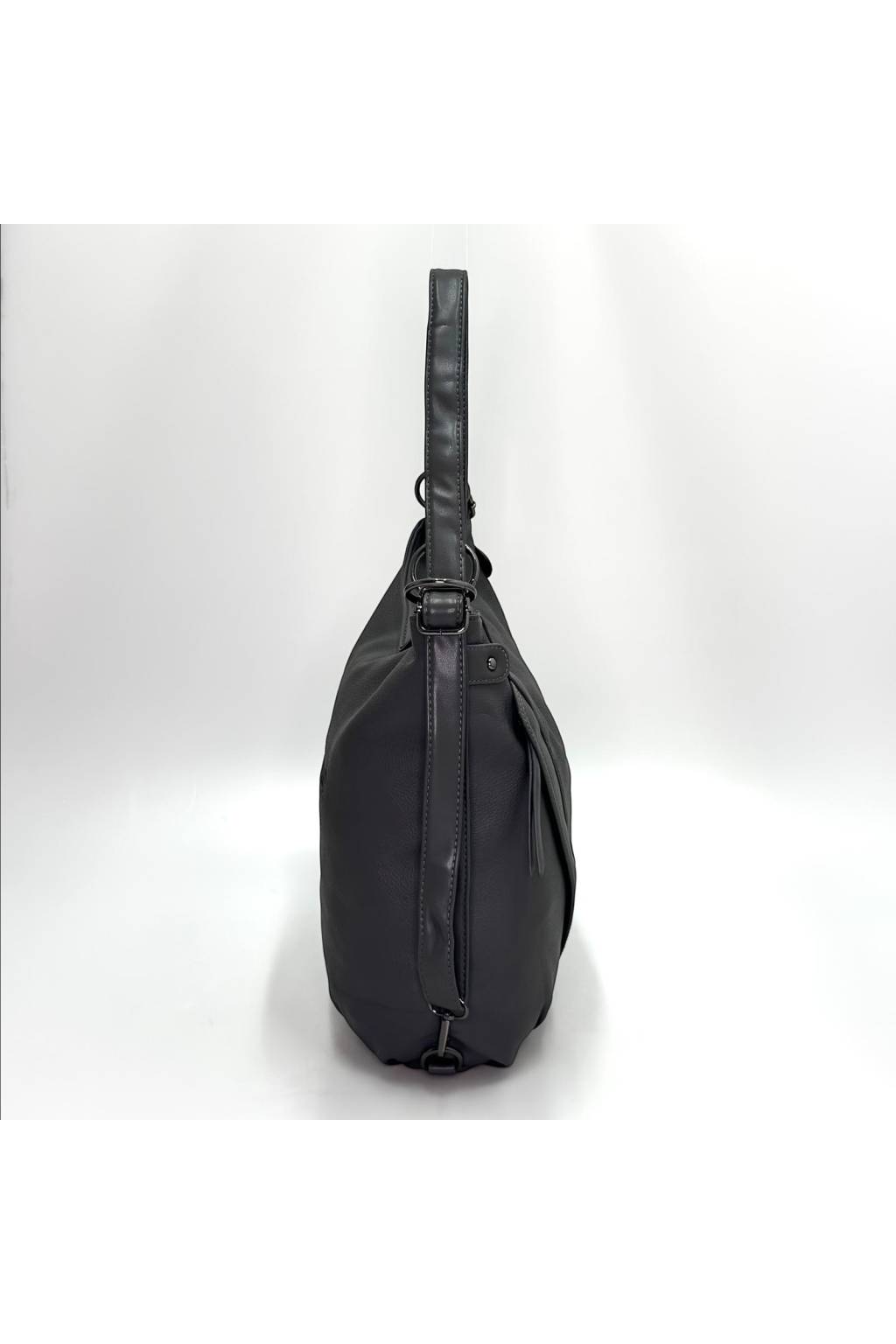 Vyrobená je z kvalitného syntetického materiálu so štruktúrovaným povrchom, ktorý pôsobí moderne a je odolný voči každodennému používaniu. Popruhy sú nastaviteľné a umožňujú jednoduchú premenu kabelky na ruksak alebo crossbody variant. Kovové detaily v tmavom prevedení dodávajú modelu elegantný vzhľad.