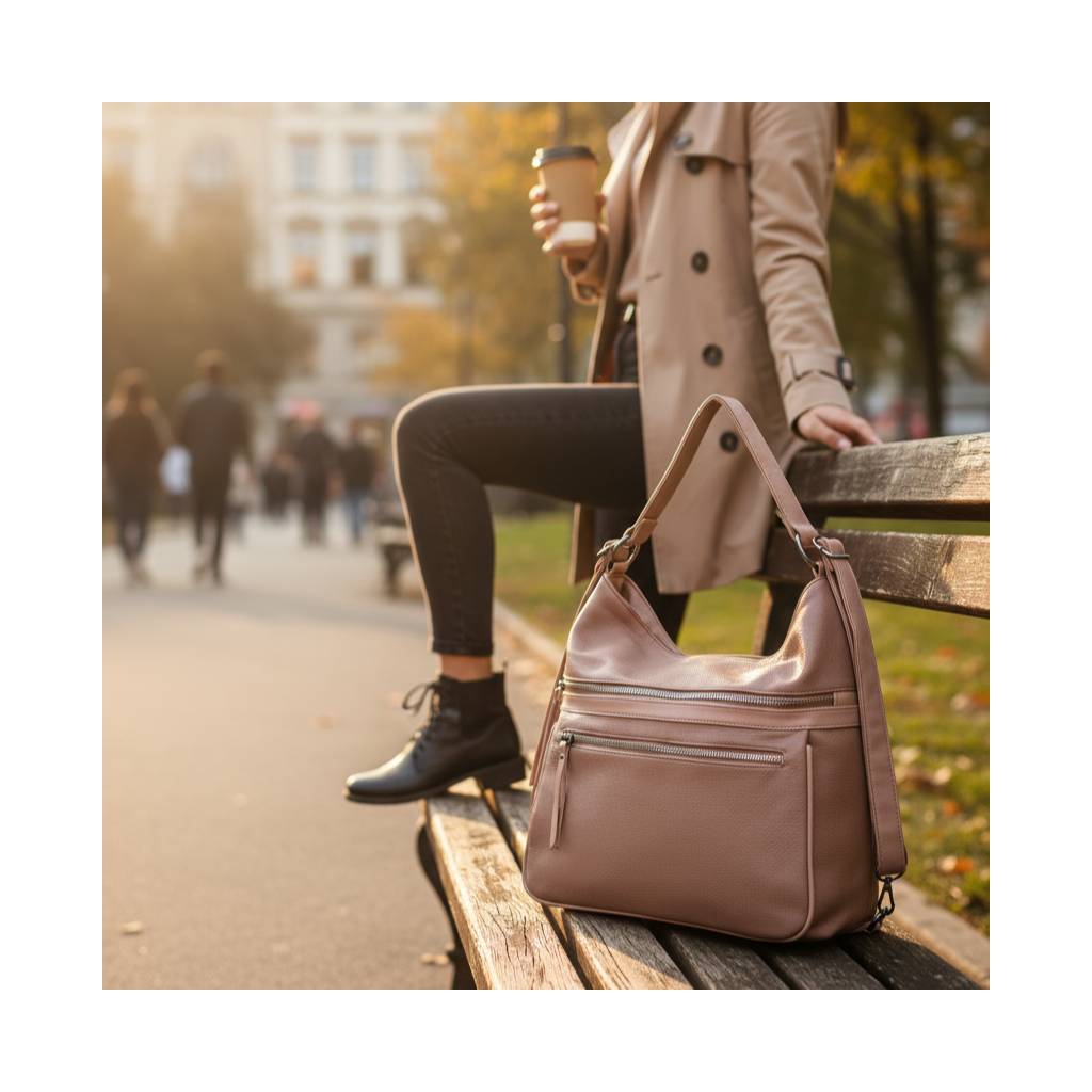 Táto dámska kabelka 3v1 v univerzálnej farbe je ideálnym spojením elegancie a praktickosti. Ponúka tri možnosti nosenia – na ramene ako štýlová kabelka, krížom cez telo ako priestranná crossbody, alebo na chrbte ako pohodlný ruksak. Jeden doplnok tak dokonale nahradí hneď niekoľko tašiek.
