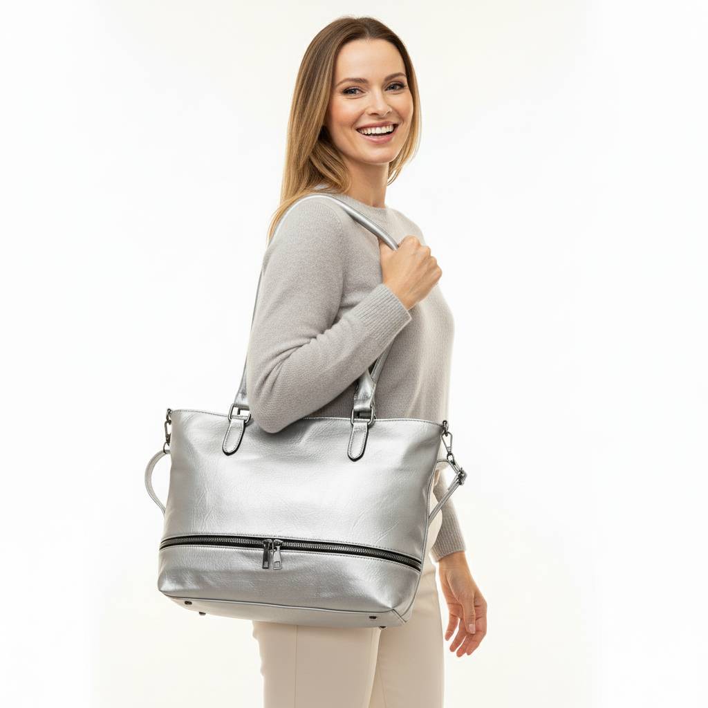 Elegantná každodenná kabelka v modernom odtieni, ktorá skvele ladí s neutrálnym aj výrazným šatníkom. Praktické dlhé rúčky umožnia pohodlné nosenie na ramene, priložený nastaviteľný popruh z nej spraví aj crossbody. Predný horizontálny zips s dvojitým jazdcom dodáva dizajnu šmrnc a zároveň ponúka rýchly prístup k drobnostiam.