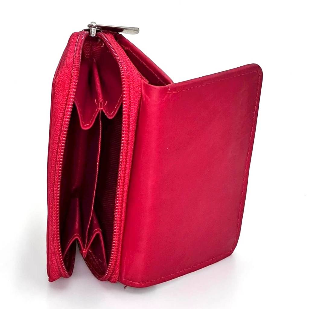 Elegantná dámska peňaženka z pravej kože v atraktívnej červenej farbe. Vďaka kompaktným rozmerom sa zmestí do každej kabelky, no zároveň ponúka dostatok priestoru na karty, mince aj bankovky. Uzatváranie na zips a patent poskytuje maximálnu bezpečnosť. Praktické priehradky umožňujú prehľadné uloženie dokladov a kariet. Kvalitné spracovanie zaručuje dlhú životnosť a nadčasový dizajn, ktorý sa hodí na každodenné používanie aj ako darček.