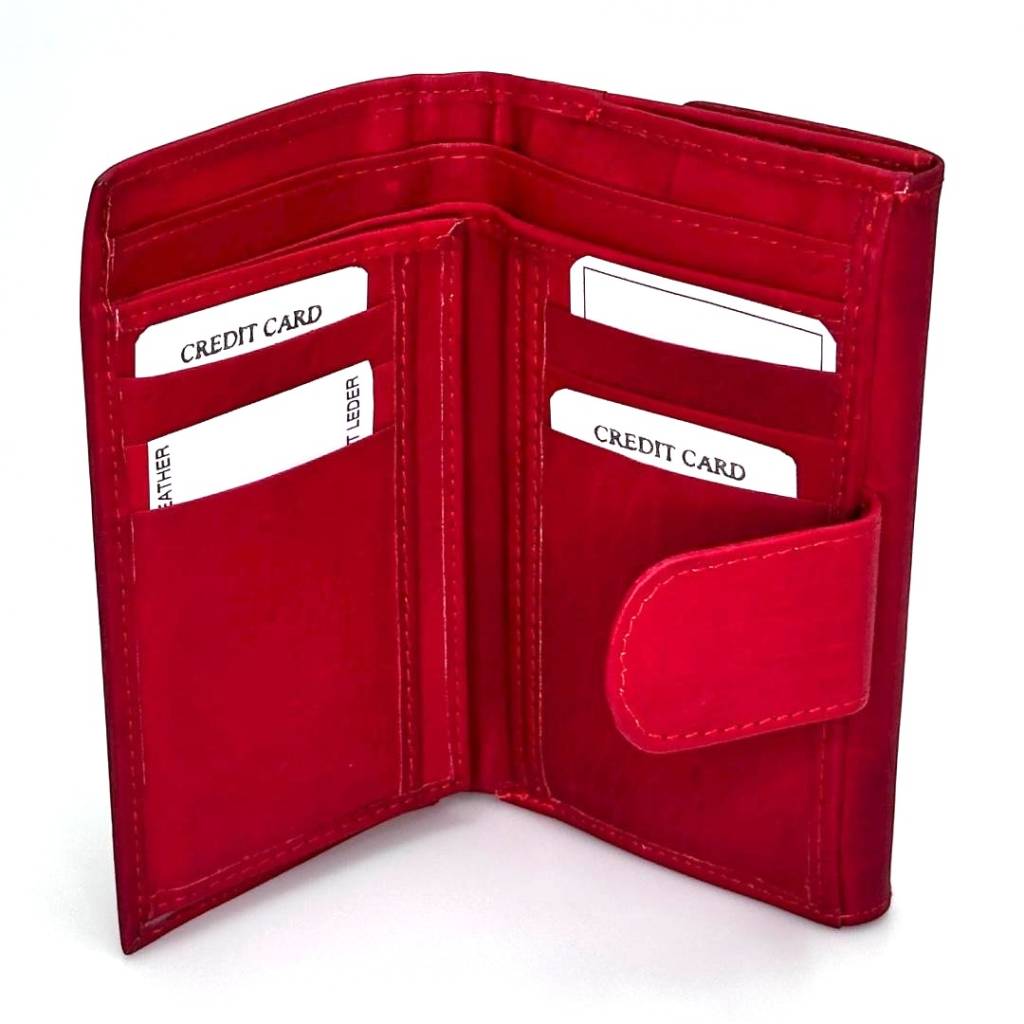 Červená farba pôsobí moderne, žensky a zároveň dodáva peňaženke štýlový vzhľad. Bezpečné zapínanie chráni obsah pred stratou a dodáva peňaženke elegantný dizajn.