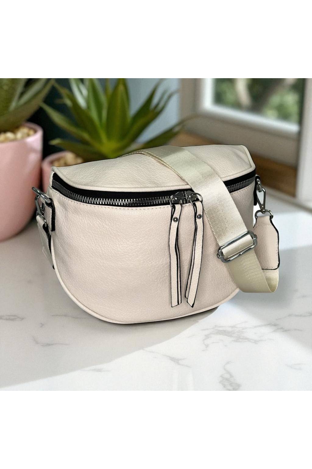 Moderná a priestranná dámska ľadvinka z eko kože. Ideálna na výlety či prechádzky mestom.