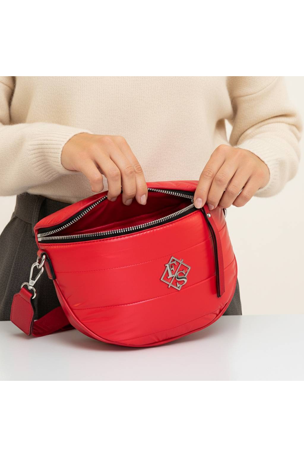 Široký nastaviteľný popruh – pohodlné crossbody nosenie, nezošmykuje sa.
