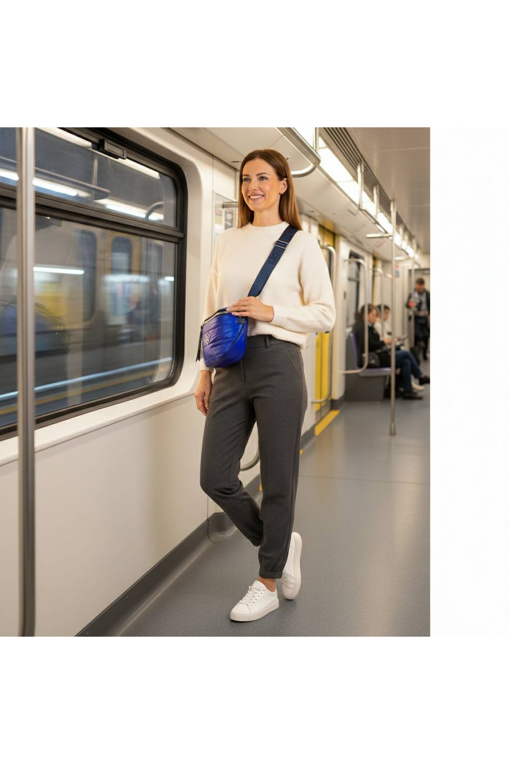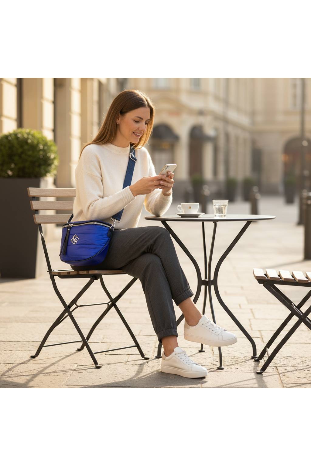 Široký nastaviteľný popruh – pohodlné crossbody nosenie, nezošmykuje sa.