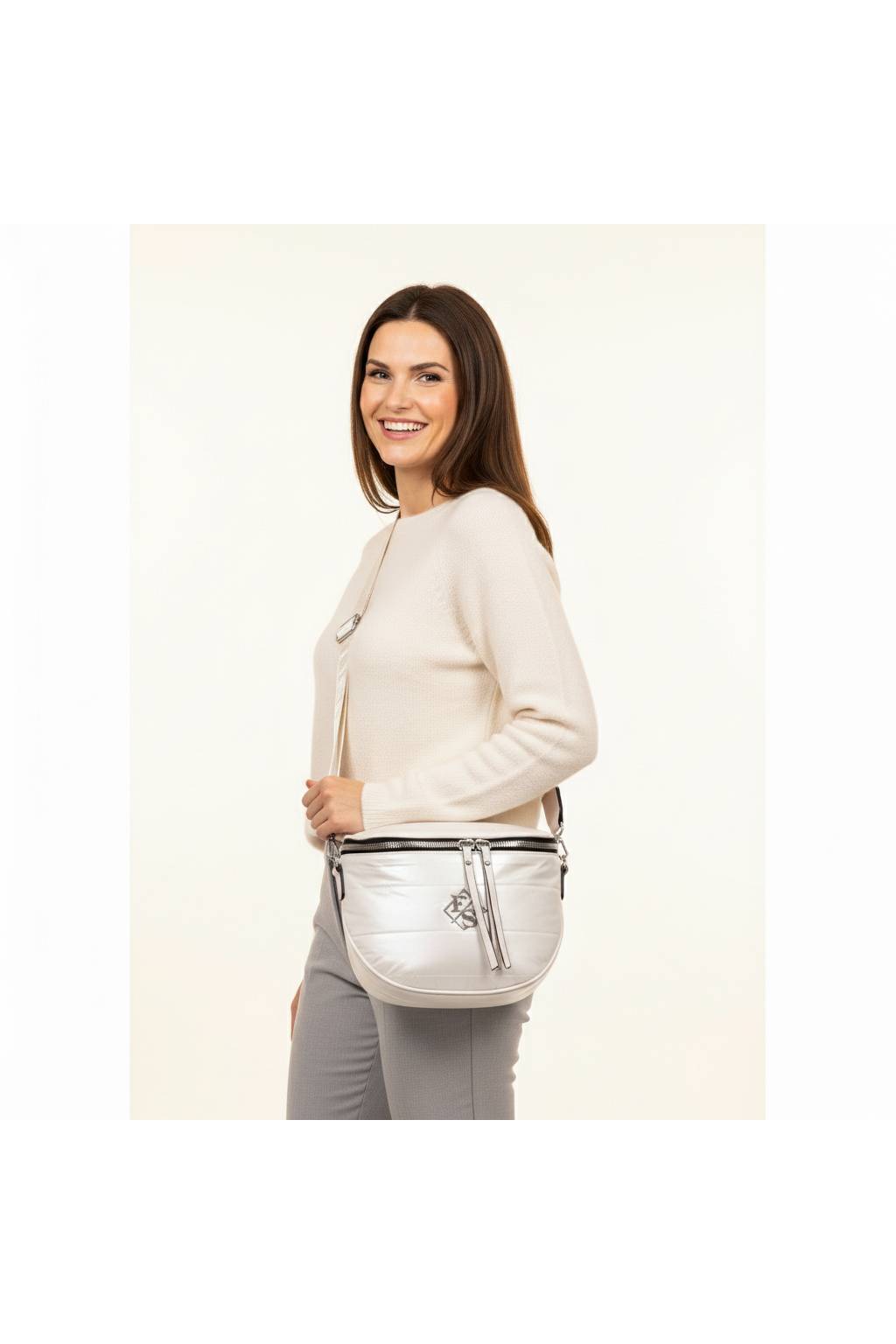 Odolná prešívaná tkanina s vodeodpudivou úpravou (eko), strieborné kovanie.